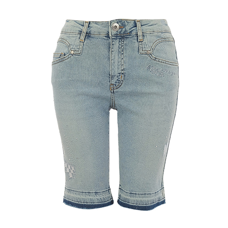Bermuda en jeans, taille avec bouton et fermeture éclair.