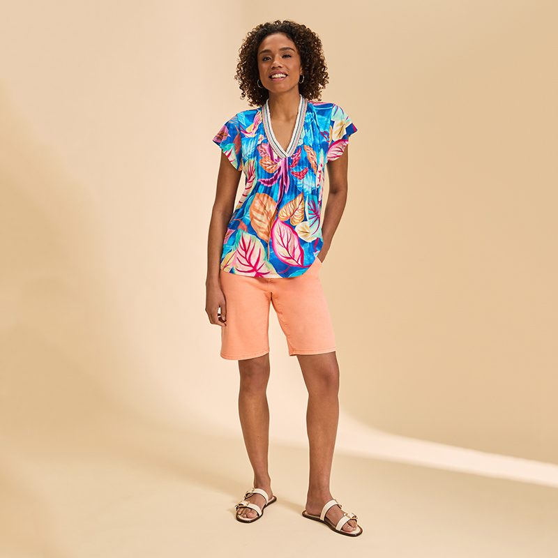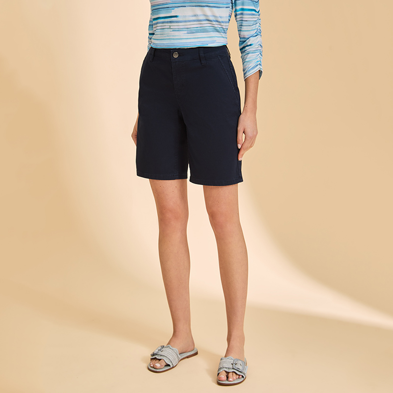 Bermuda taille régulière « Olivia », fermoir et bouton, poches en biais.