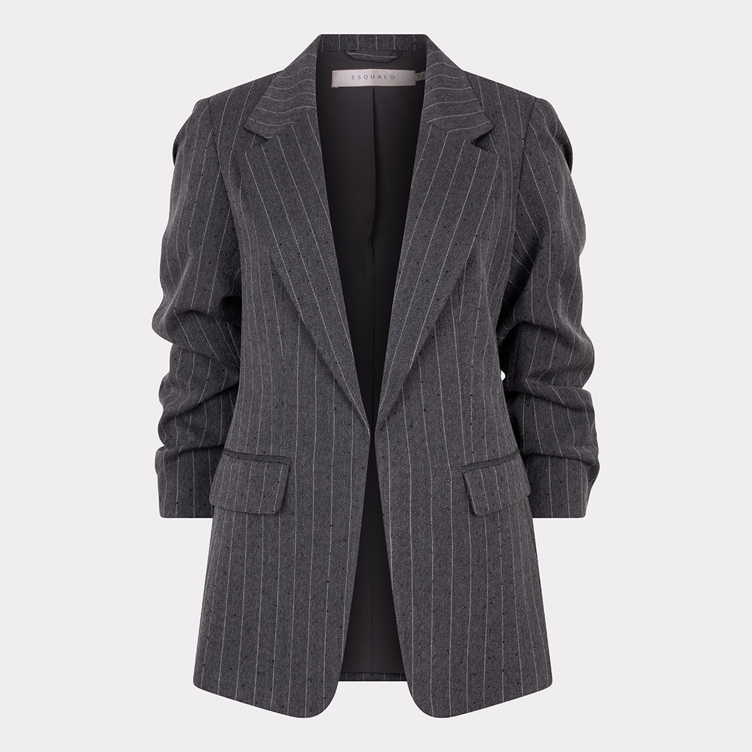 Blazer à manches 3/4 drapées, col tailleur classique sans attache.