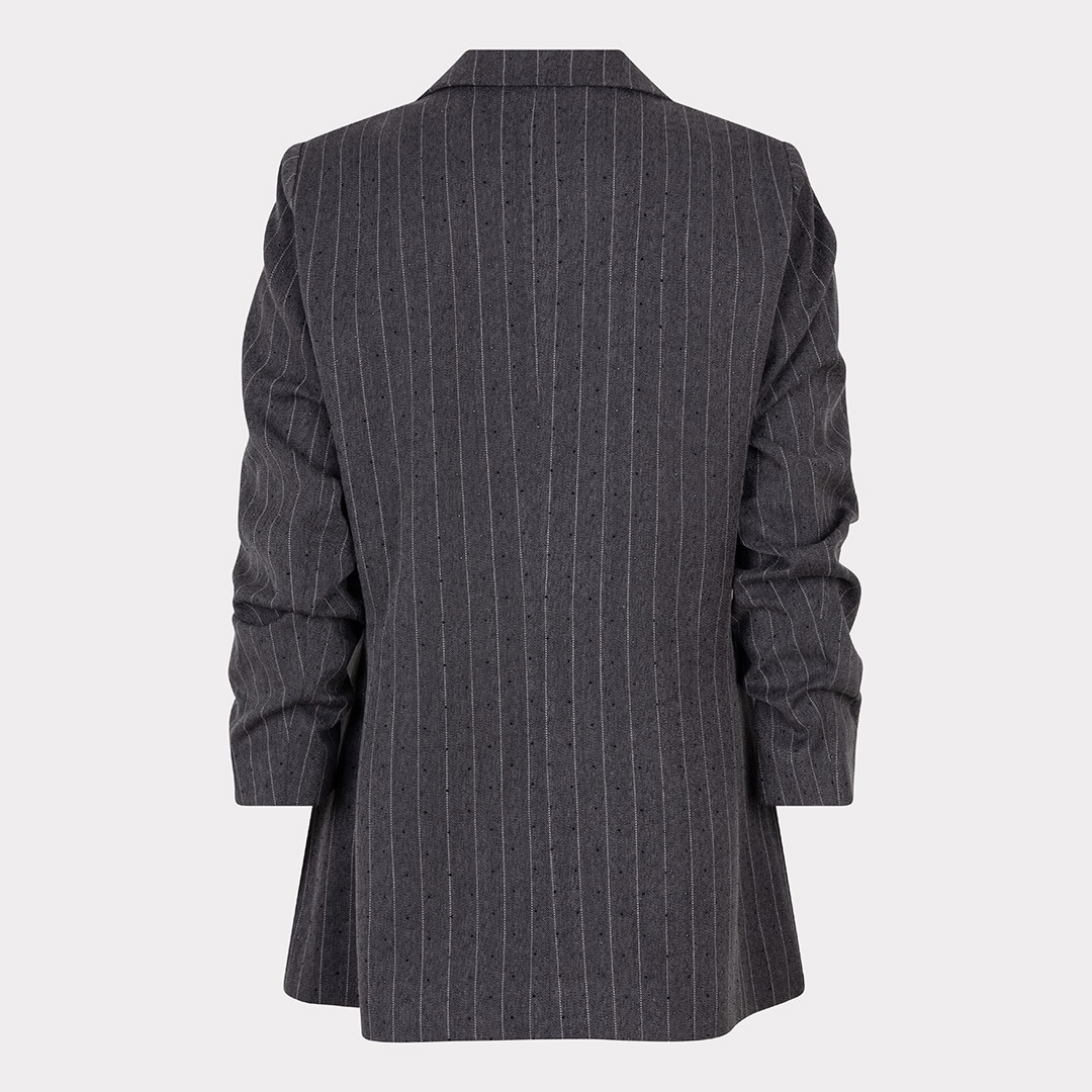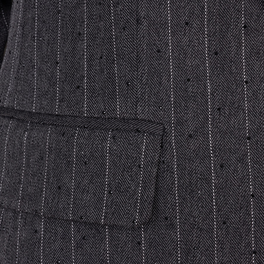 Modèle semi ajusté, entièrement doublé, disponible charcoal avec rayures fines ivoires et mini pierres noires pour un style à part ♥️