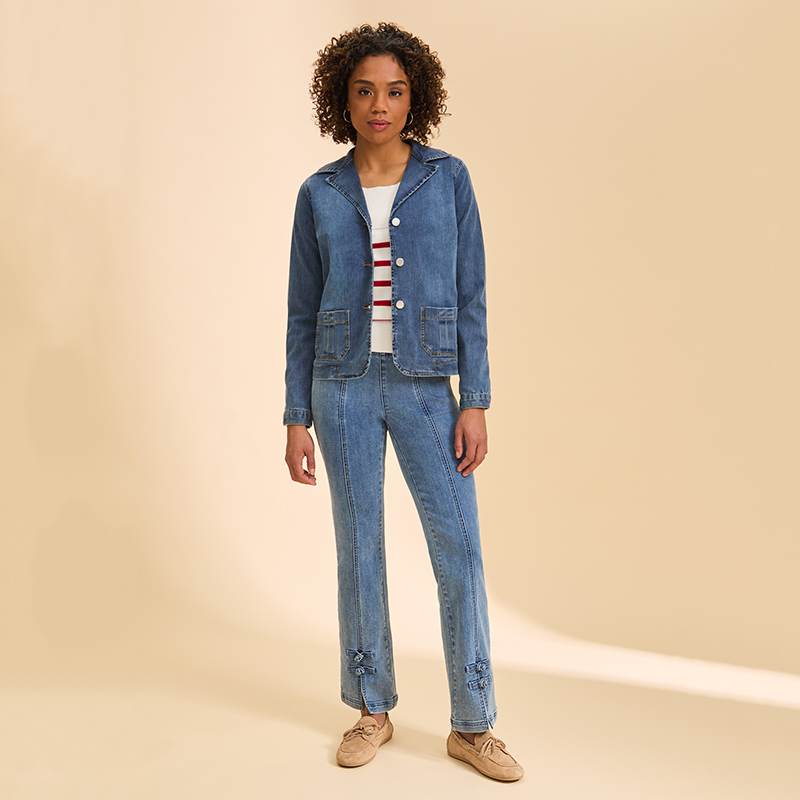Blazer en denim, col tailleur classique à manches longues.