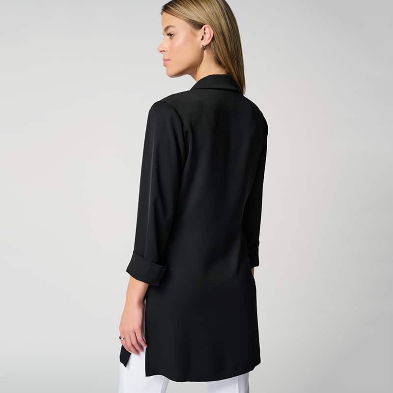 Blazer à manches 3/4 avec revers, col tailleur sans bouton.