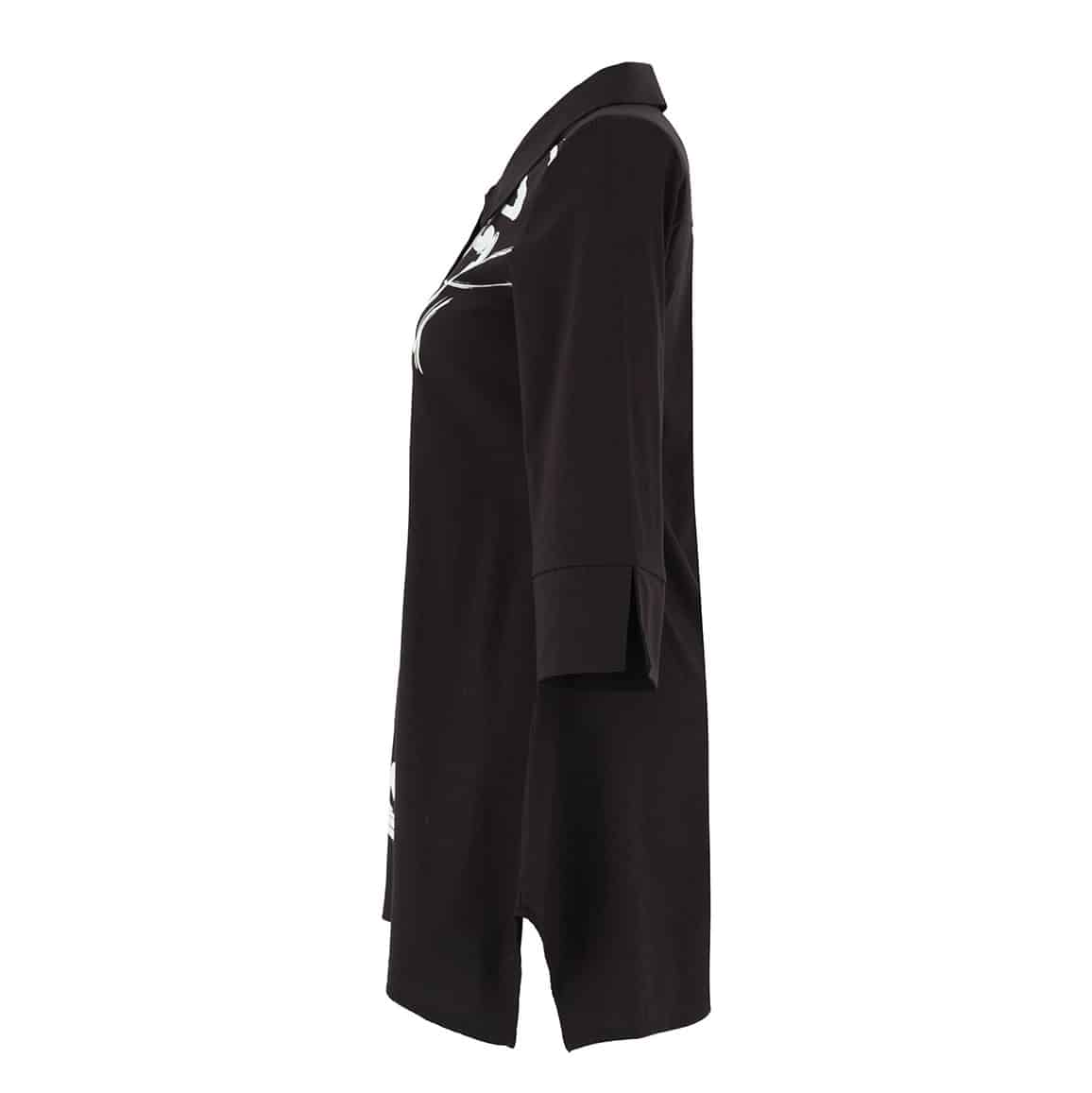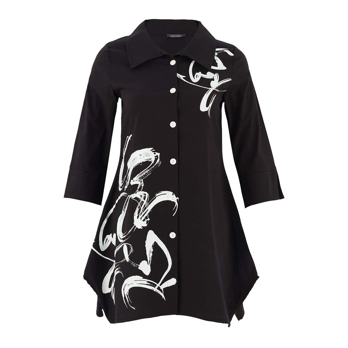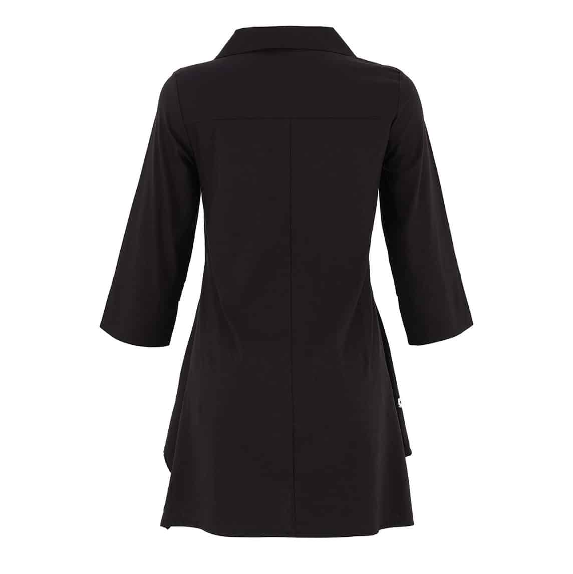 Blouse longue en coton extensible très léger à manches 3/4, col chemisier.