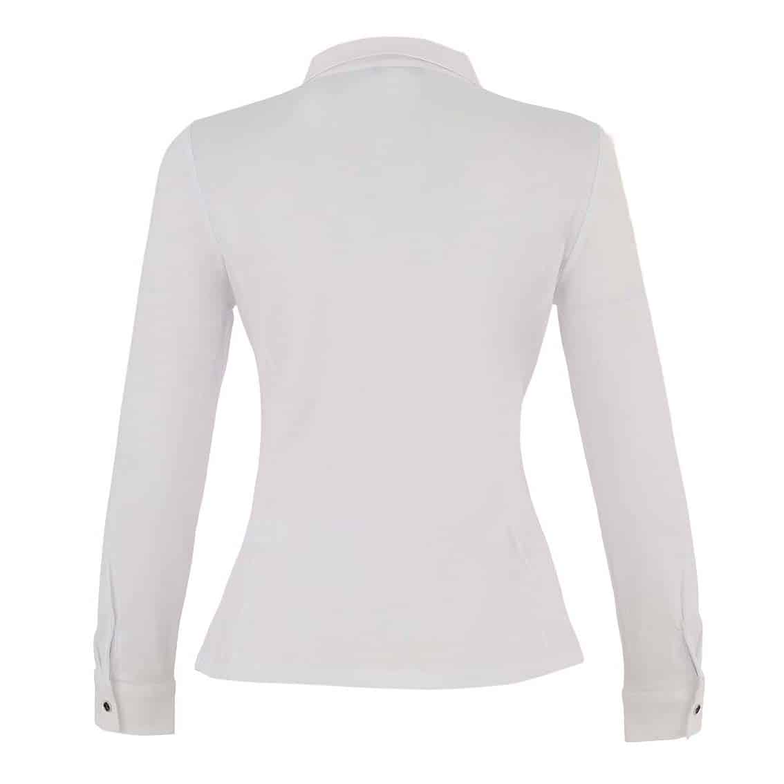 Blouse en coton souple à manches longues avec col chemisier classique au cou.