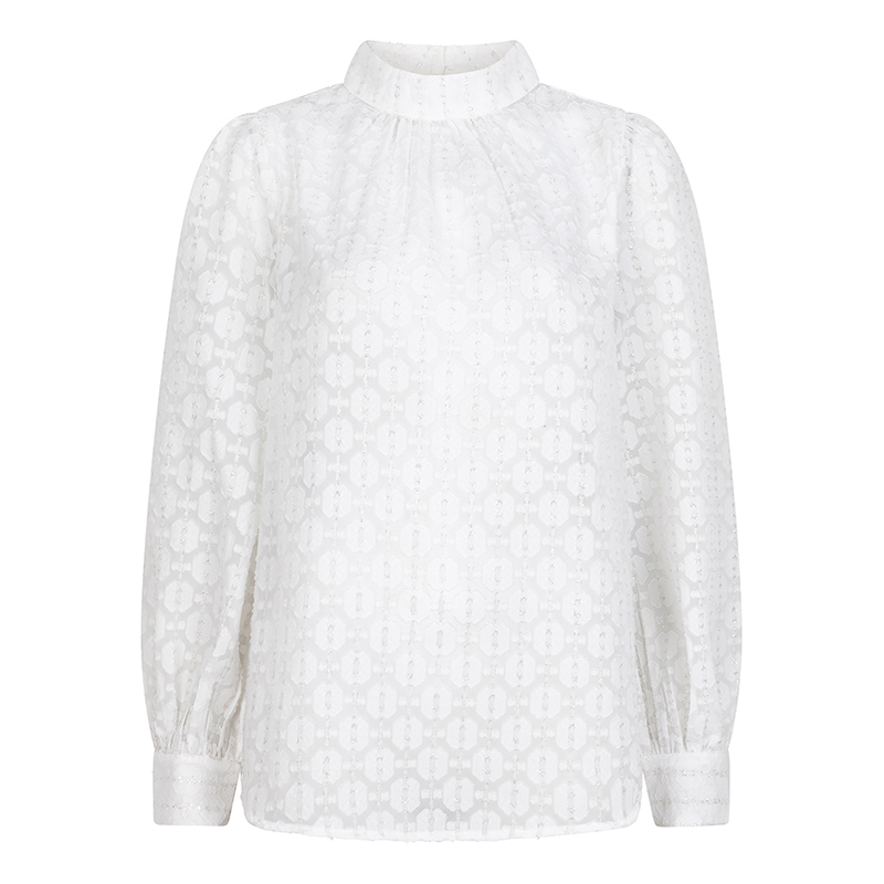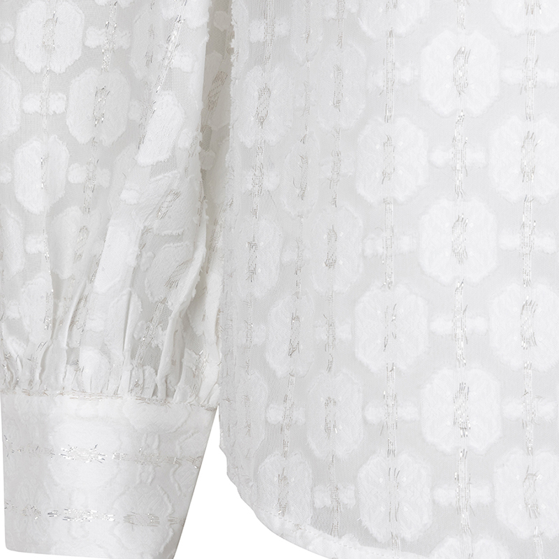 Modèle droit, ouverture au dos, disponible ivoire avec un fil de Lurex argent, légère transparence.