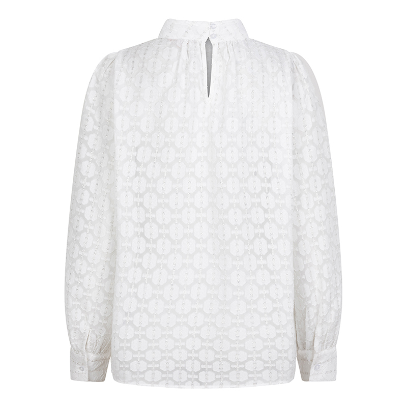 Jolie blouse à manches longues plissées sur les épaules, col Mao.