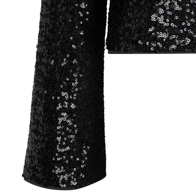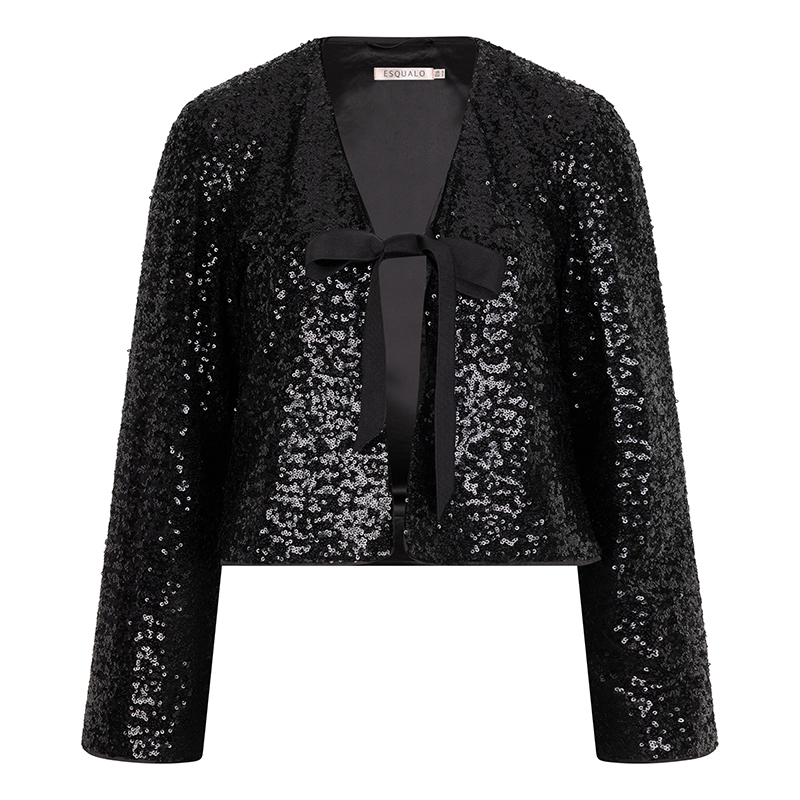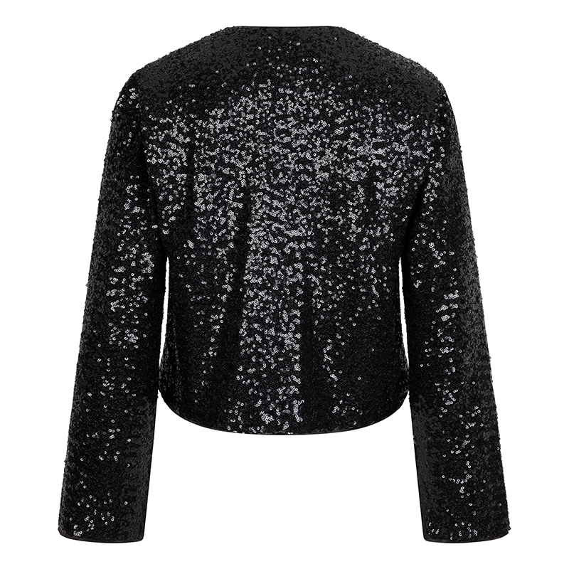 Boléro en paillettes à manches longues, sans col.