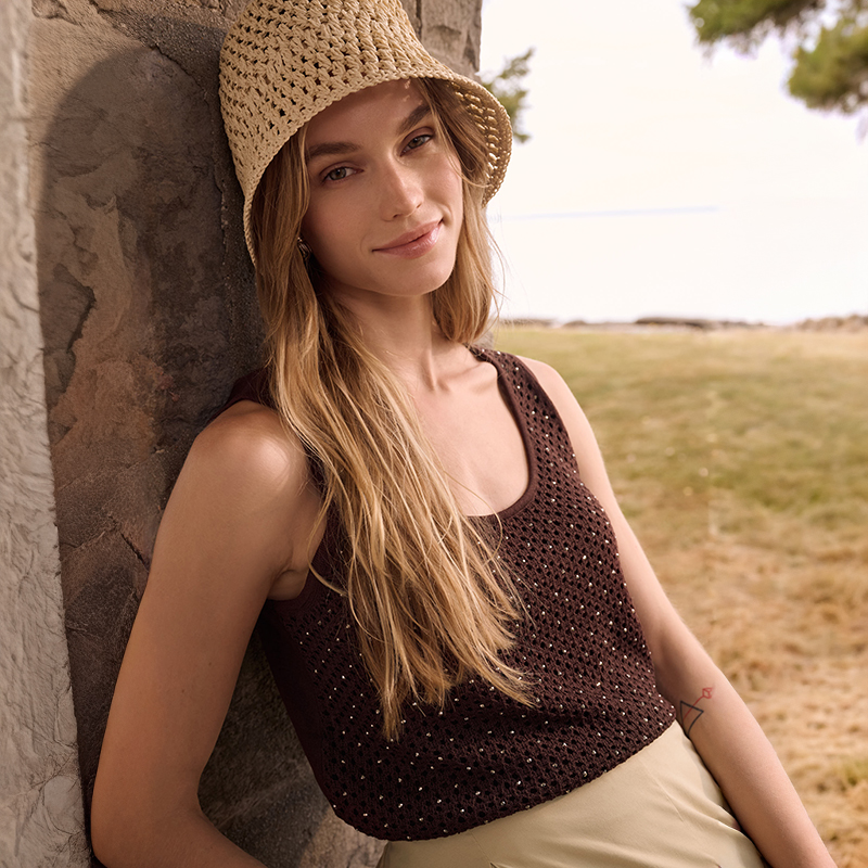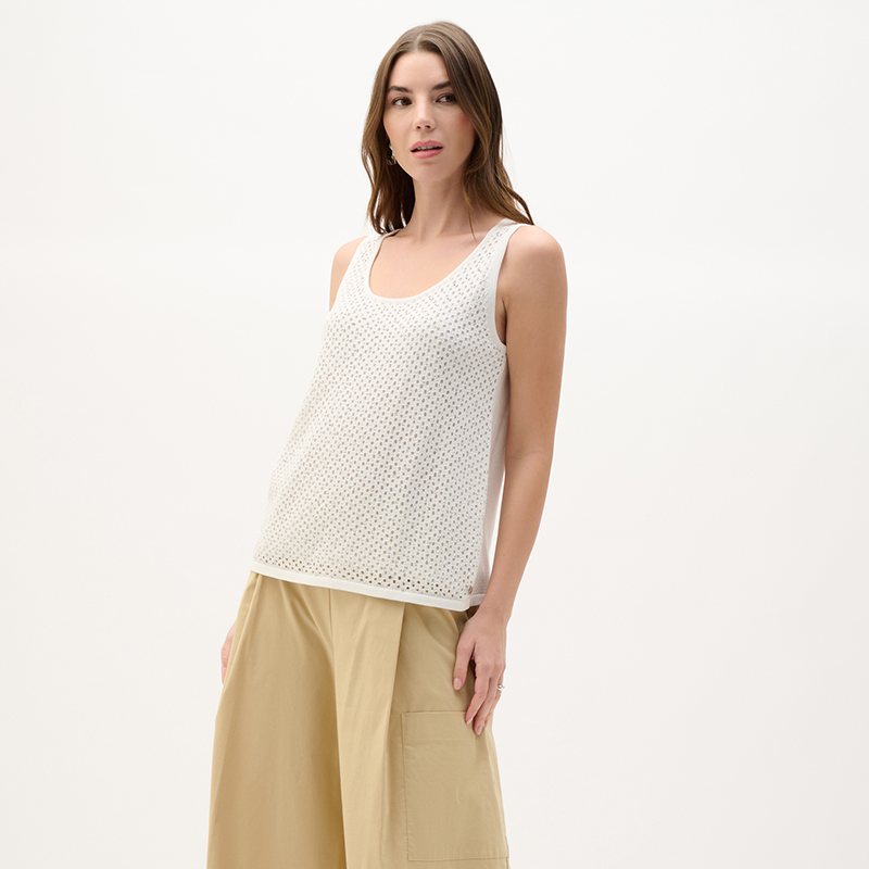 Camisole en tricot sans manches, encolure ronde dégagée.