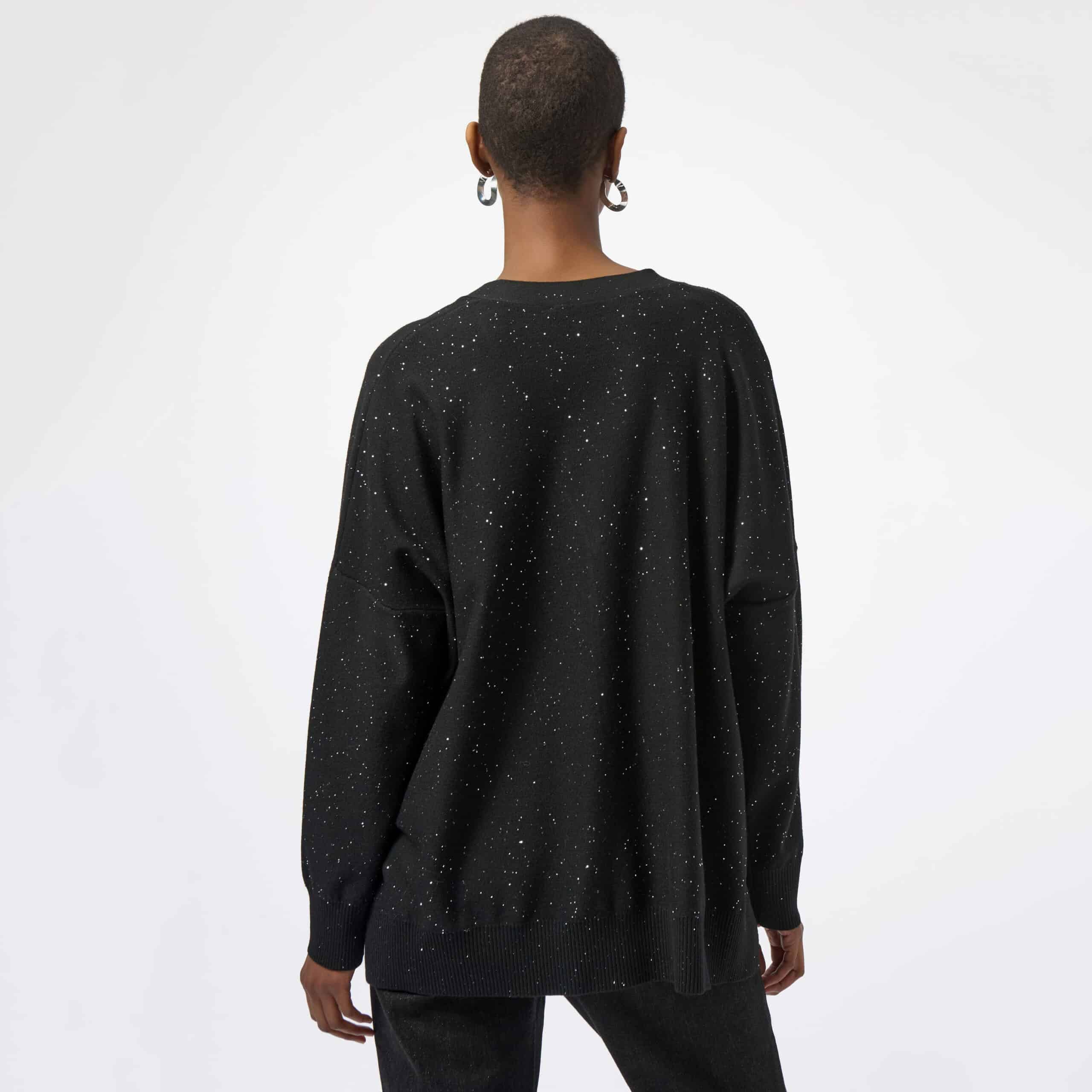 Paillettes argentées sur toute la surface, disponible noir.