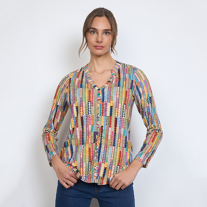 Chandail en jersey léger à manches longues, encolure en pointe.