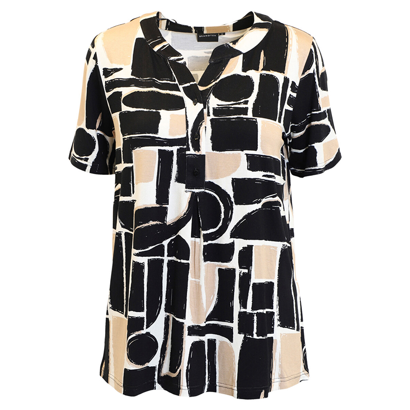Chandail en jersey à manches courtes, encolure ronde finie en pointe.