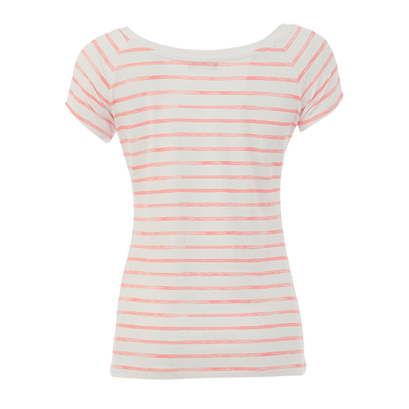 Modèle semi ajusté, manches et dos rayé blanc et corail.