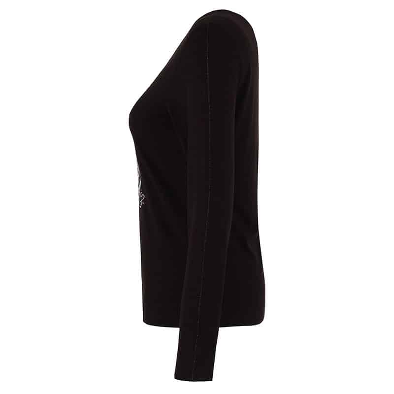 Modèle près du corps, fil lustré noir sur le dessus de la manche également pour un beau look sport-chic.