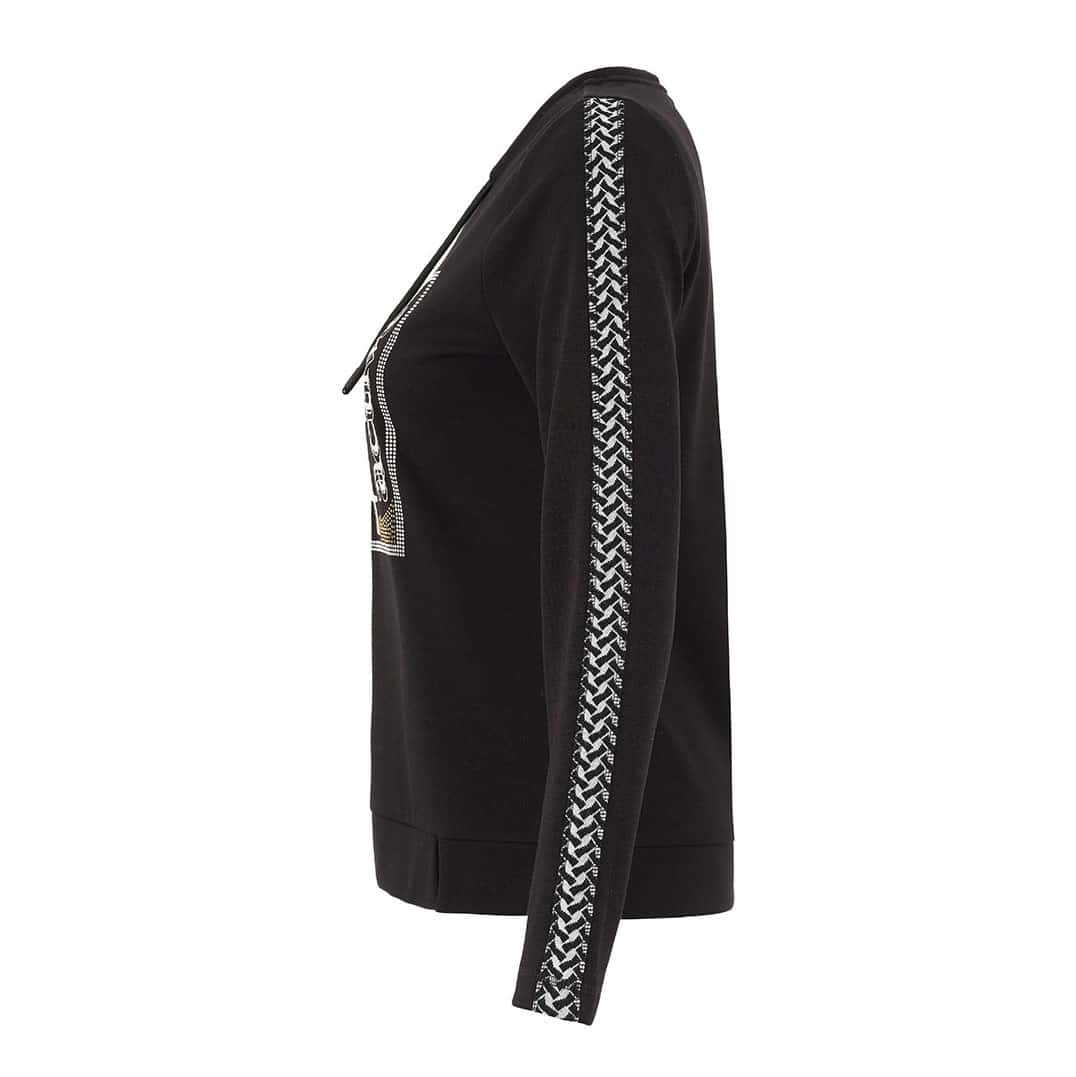 Modèle droit, disponible noir  et accent de blanc sur le dessus des manches et au devant du chandail.