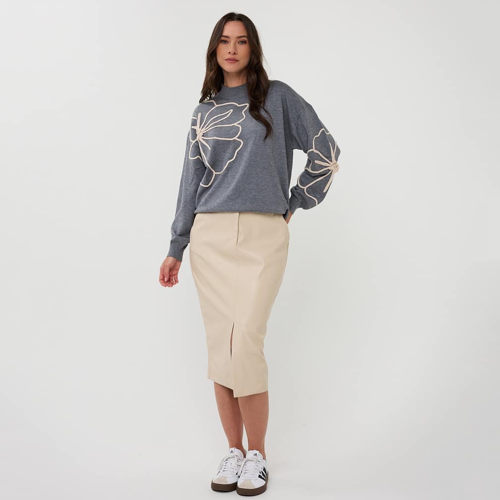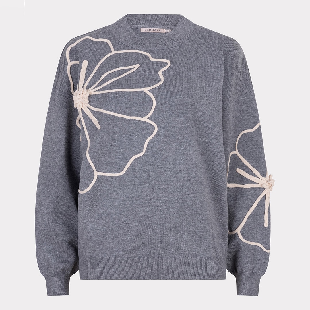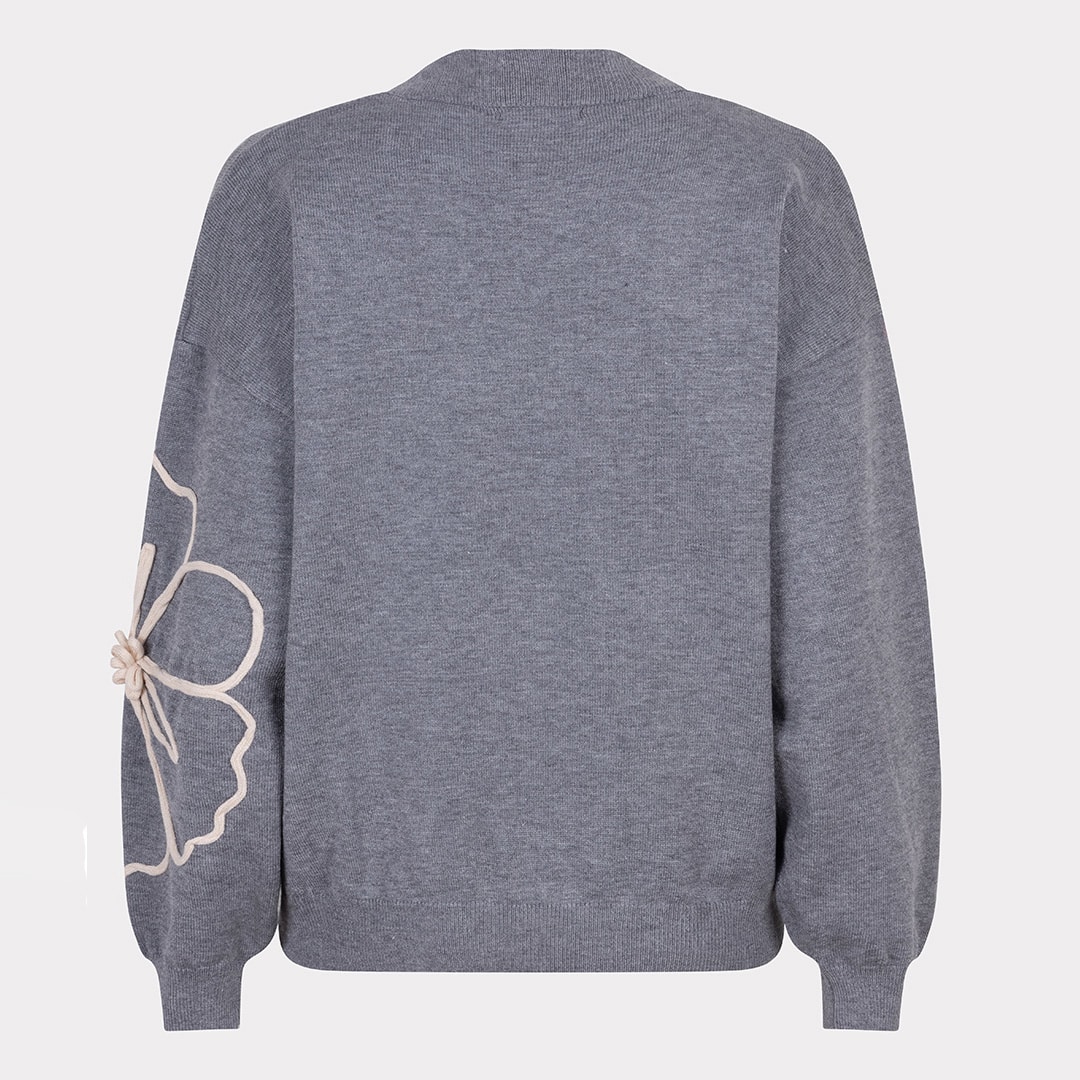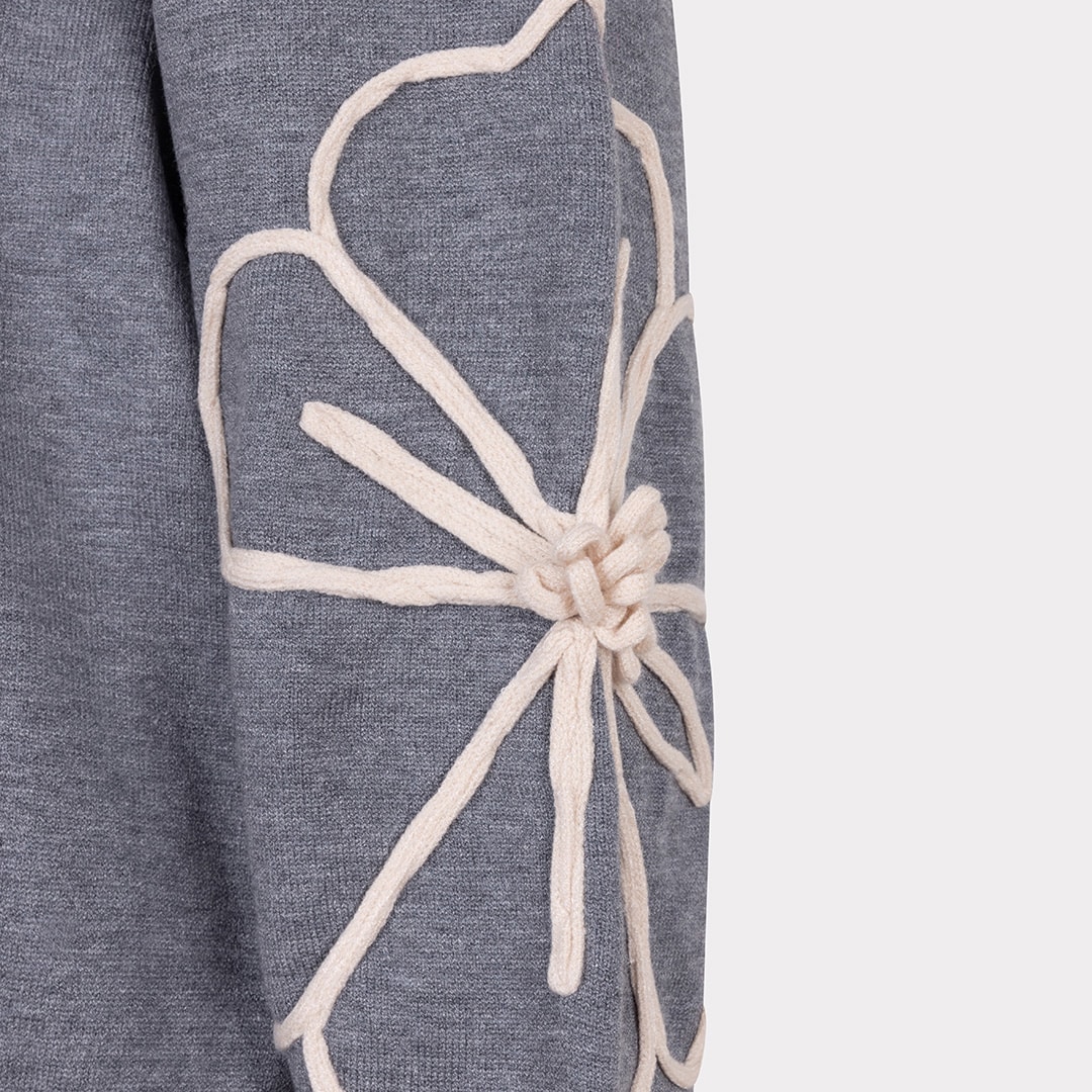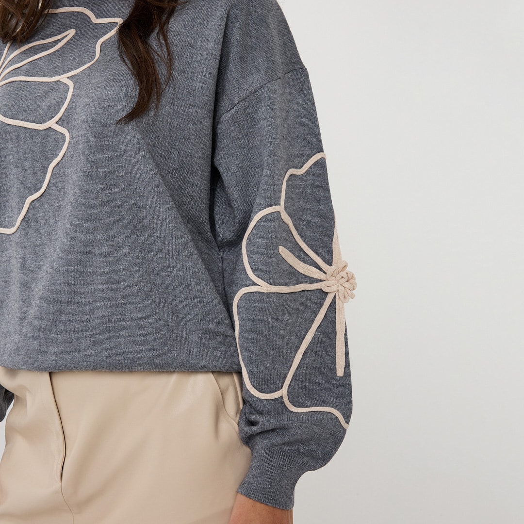Disponible gris avec des rubans en tricot naturel à motifs de jolies fleurs.