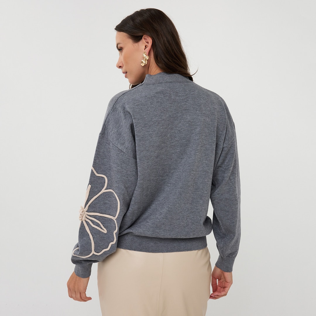 Chandail en tricot fin et doux à manches longues et amples, col montant.