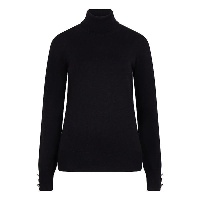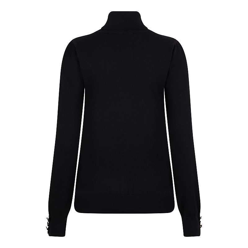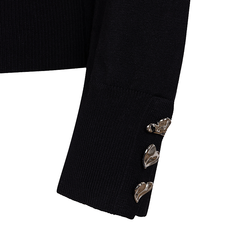 Chandail en tricot fin, col roulé près du cou, manches longues avec jolis boutons en cœurs doré aux poignets.