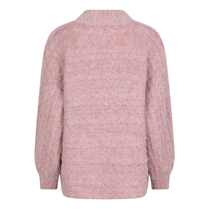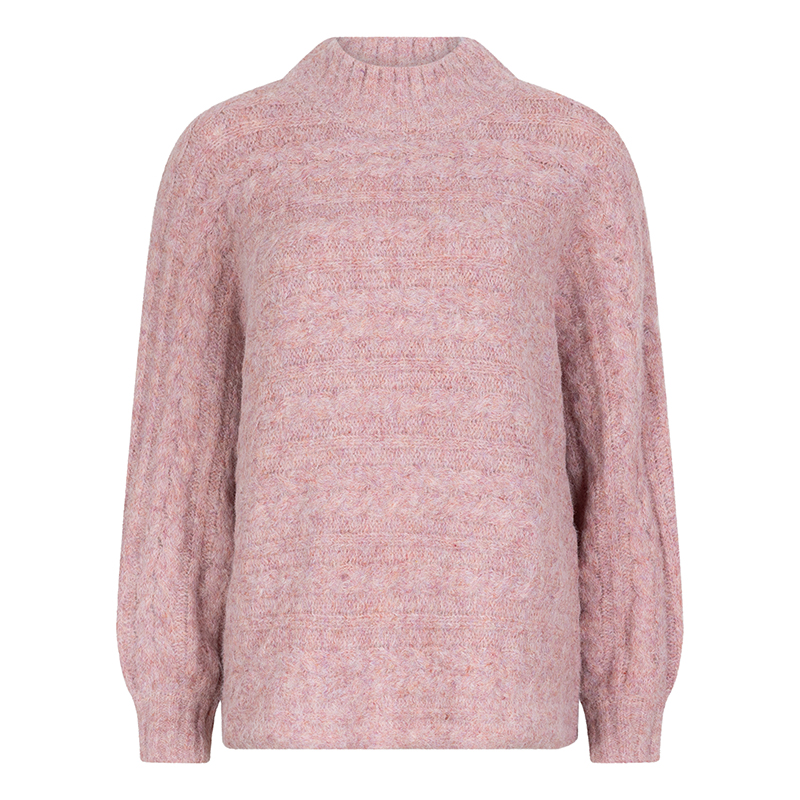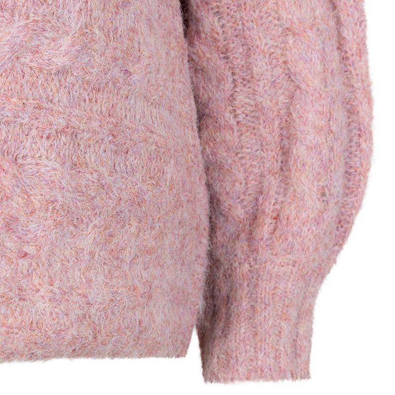 Chandail en mailles à manches longues, sans coutures aux épaules, col montant.