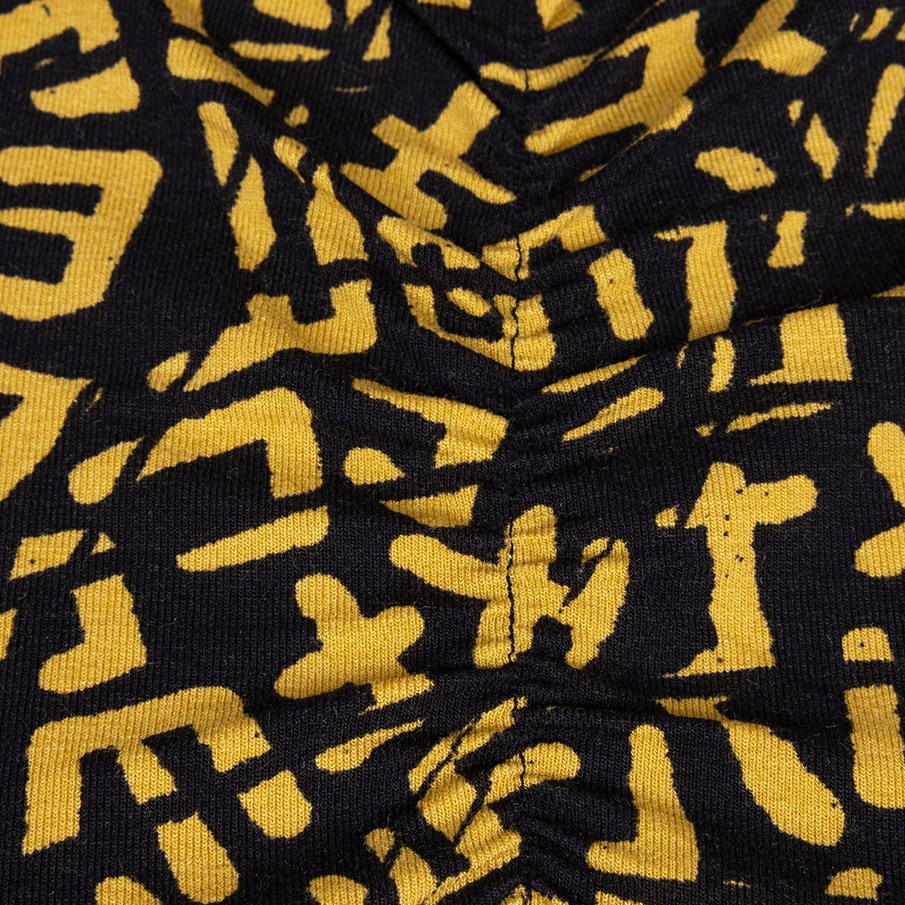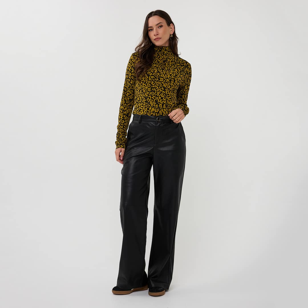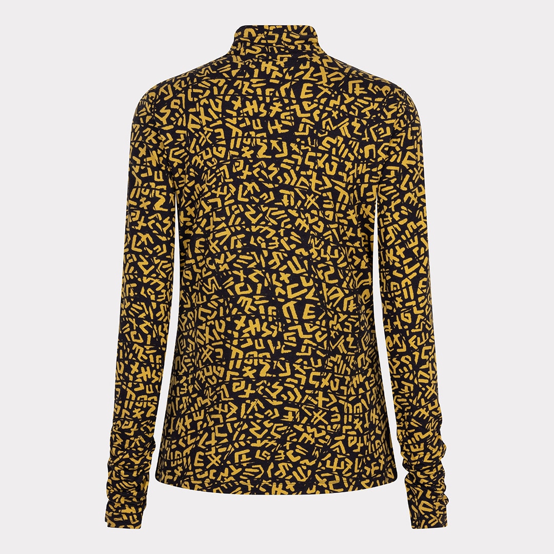 Chandail en jersey à manches longues plissé au poignets, col montant près du cou et plissé devant.