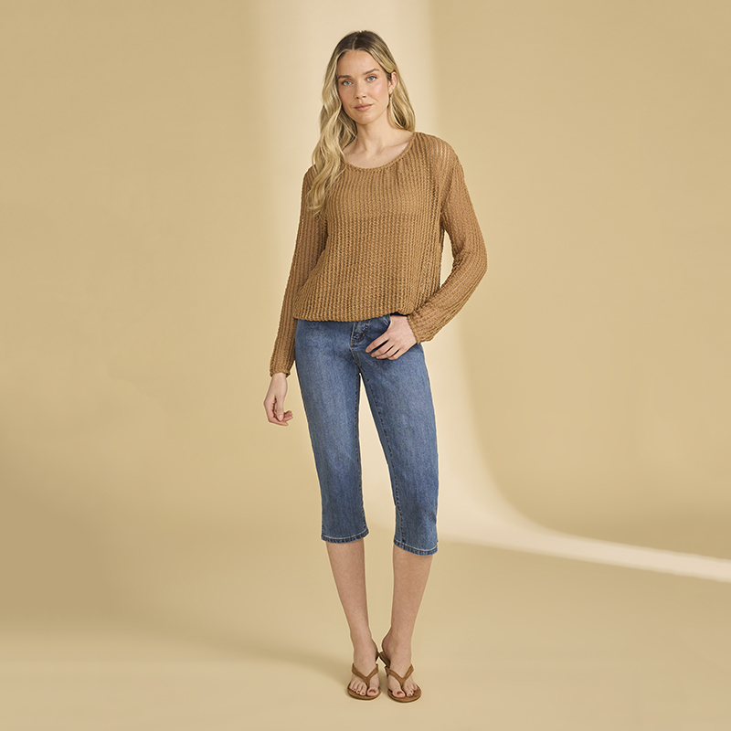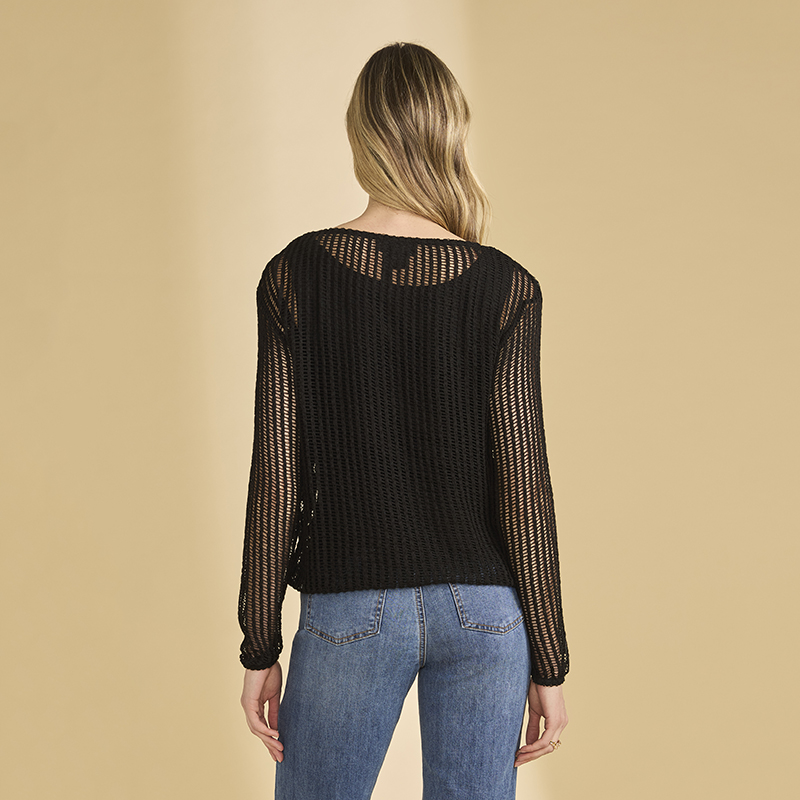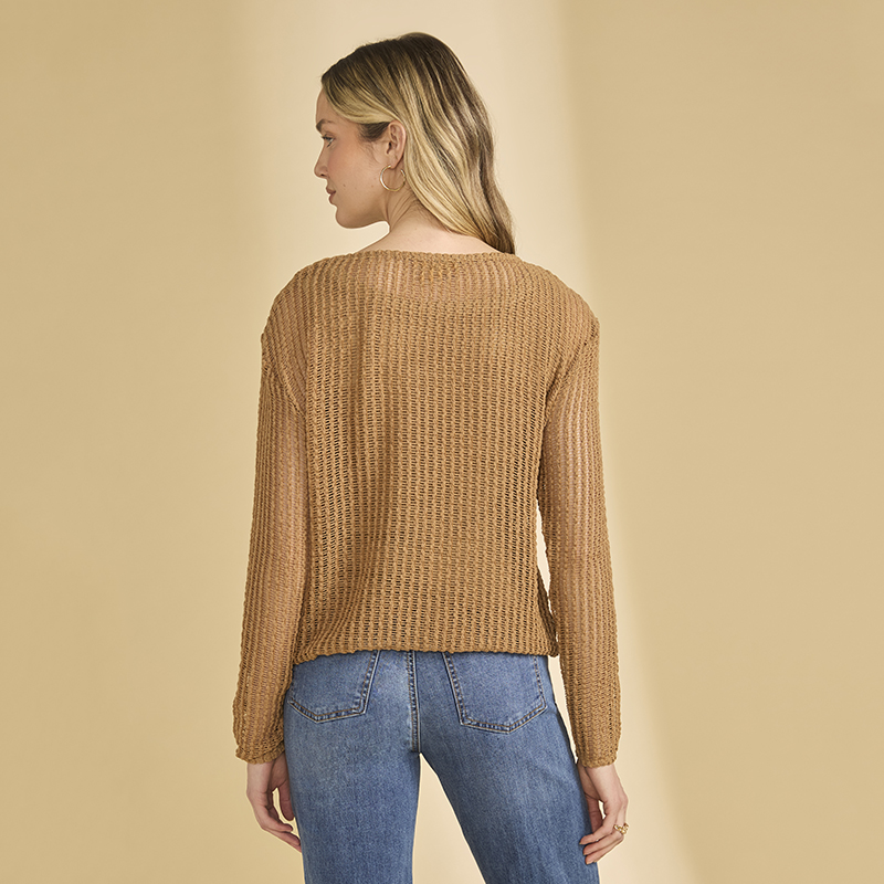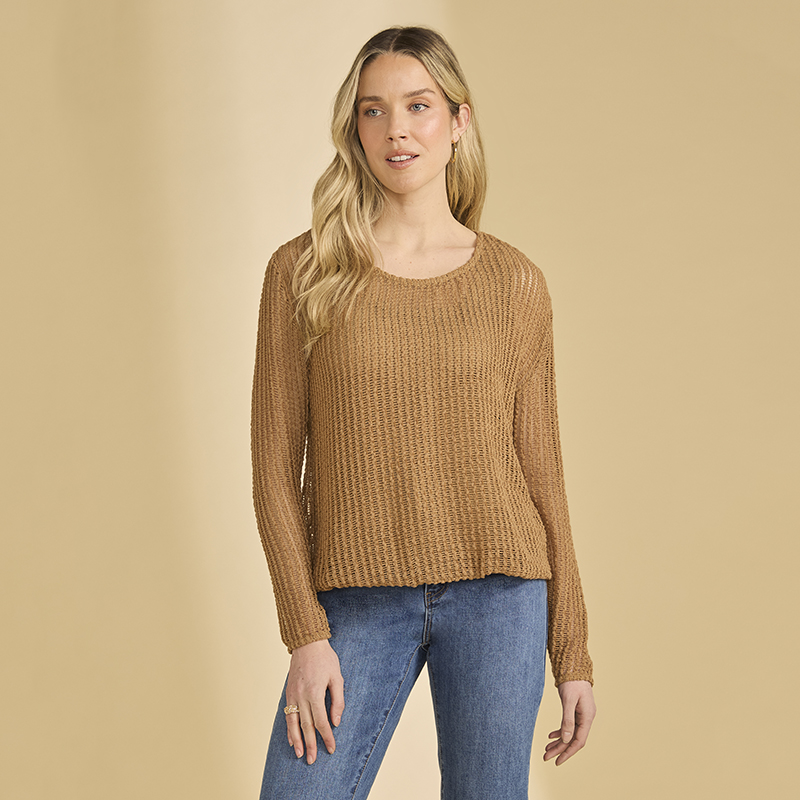 Chandail en tricot ajouré à manches longues, encolure ronde.