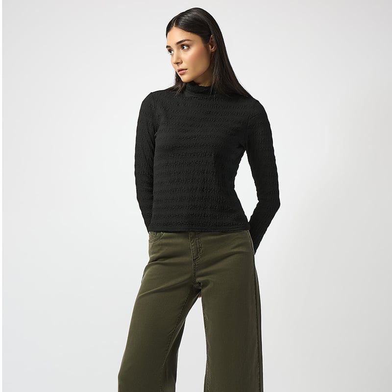 Modèle extensible près du corps, matière texturé, noir seulement.