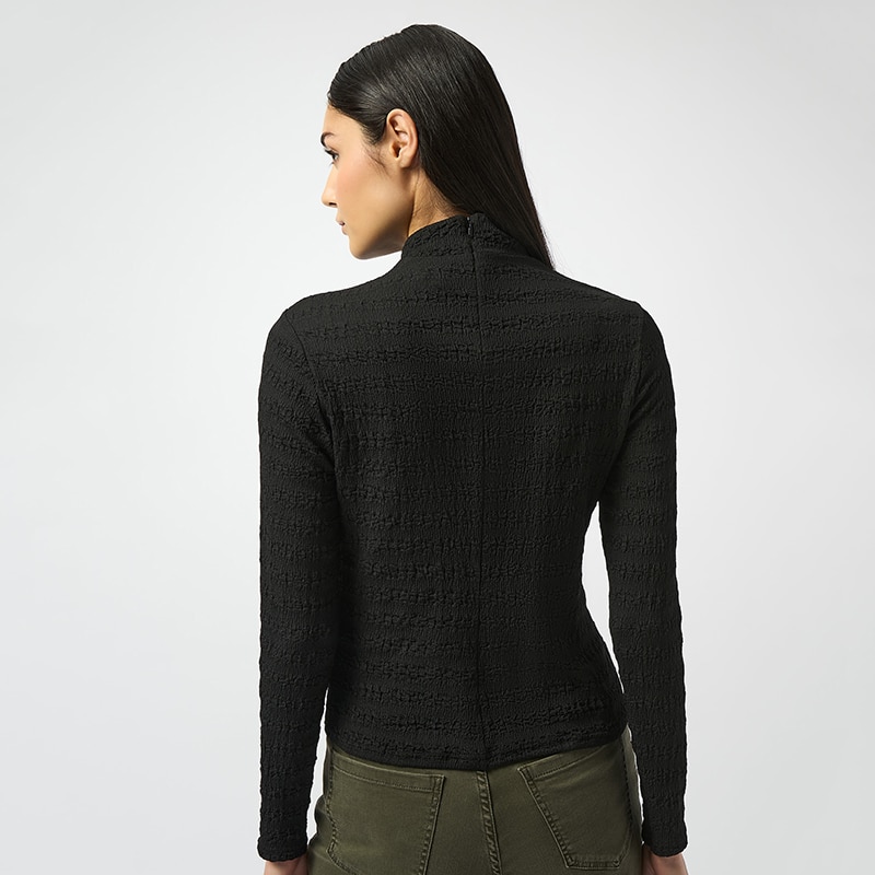 Chandail à manches longues, col montant près du cou, ouverture au dos avec fermeture éclair.