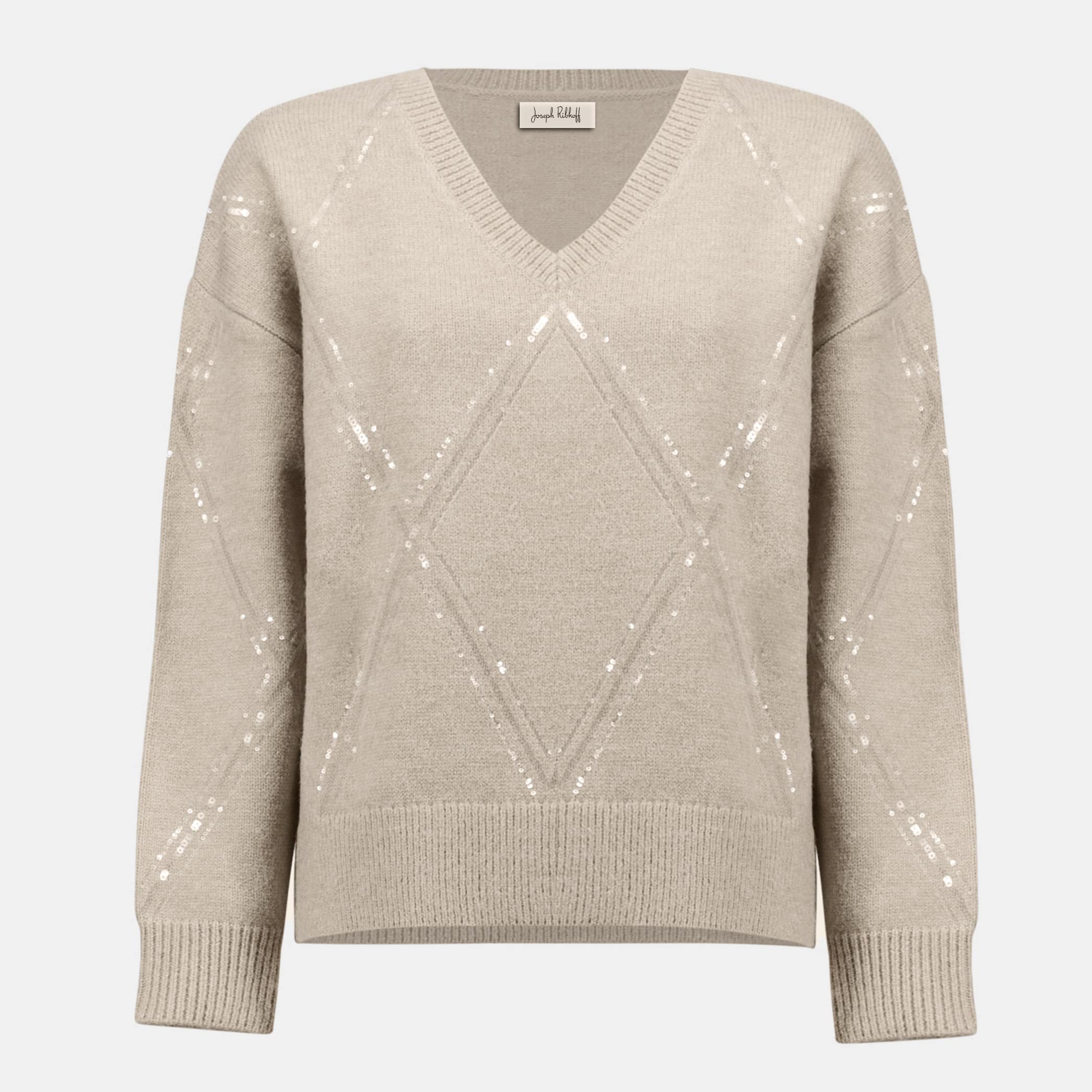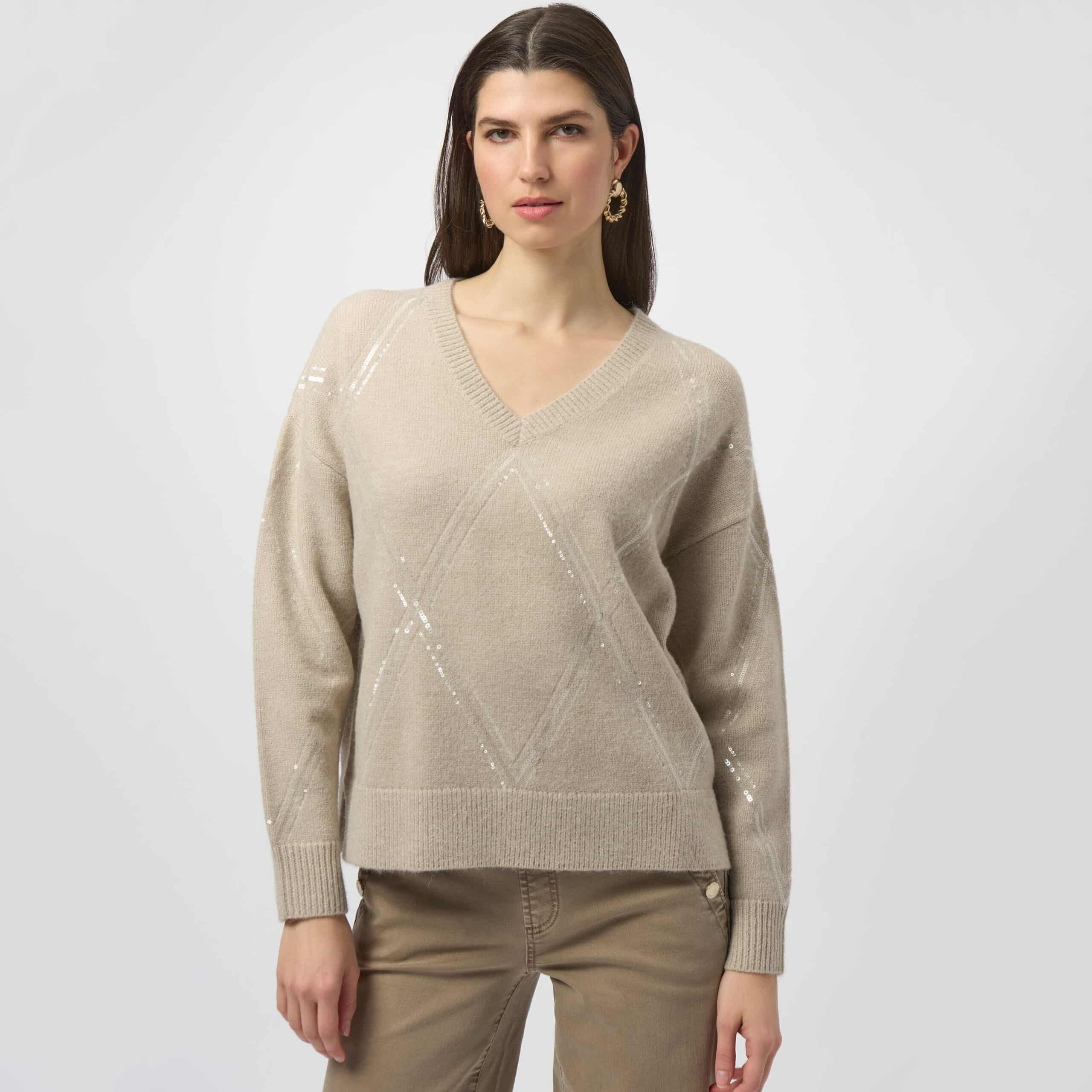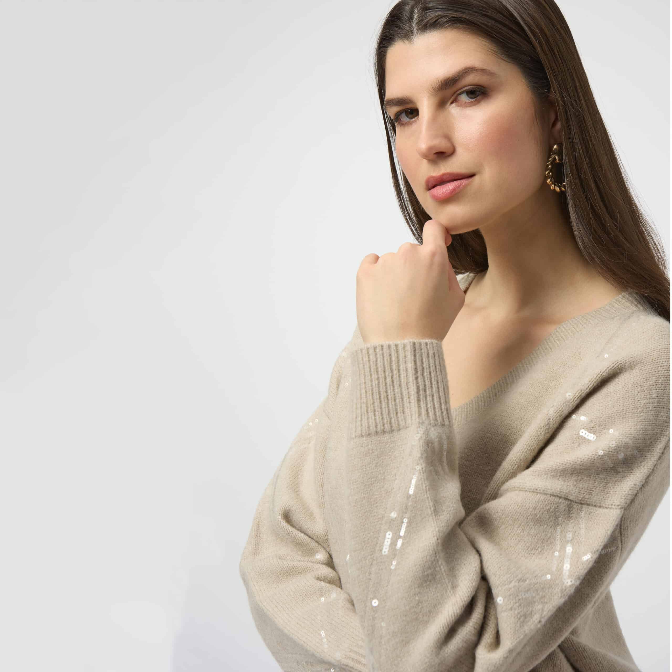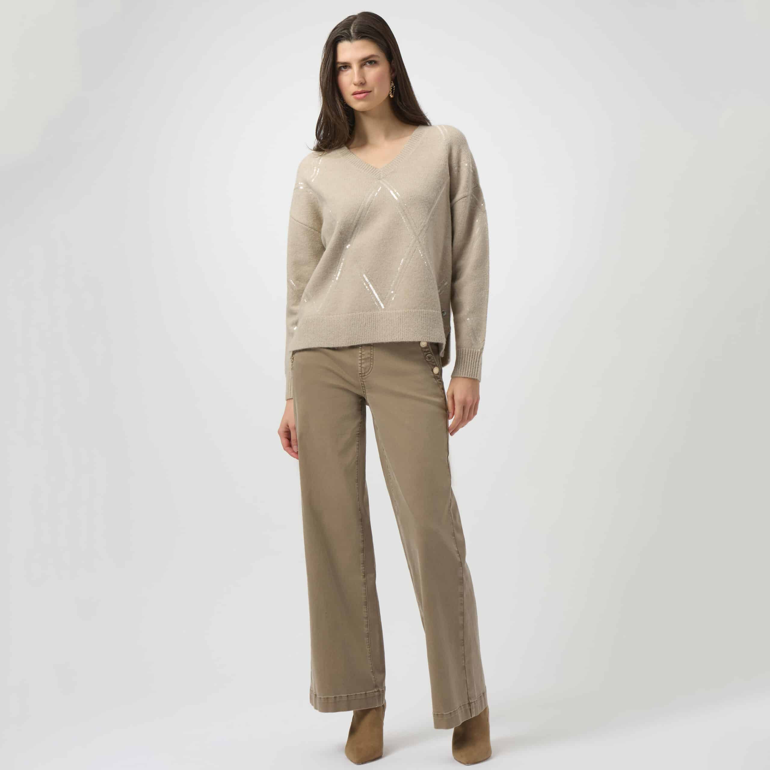 Chandail en tricot à manches longues avec coutures d’épaules basses, encolure en pointe.
