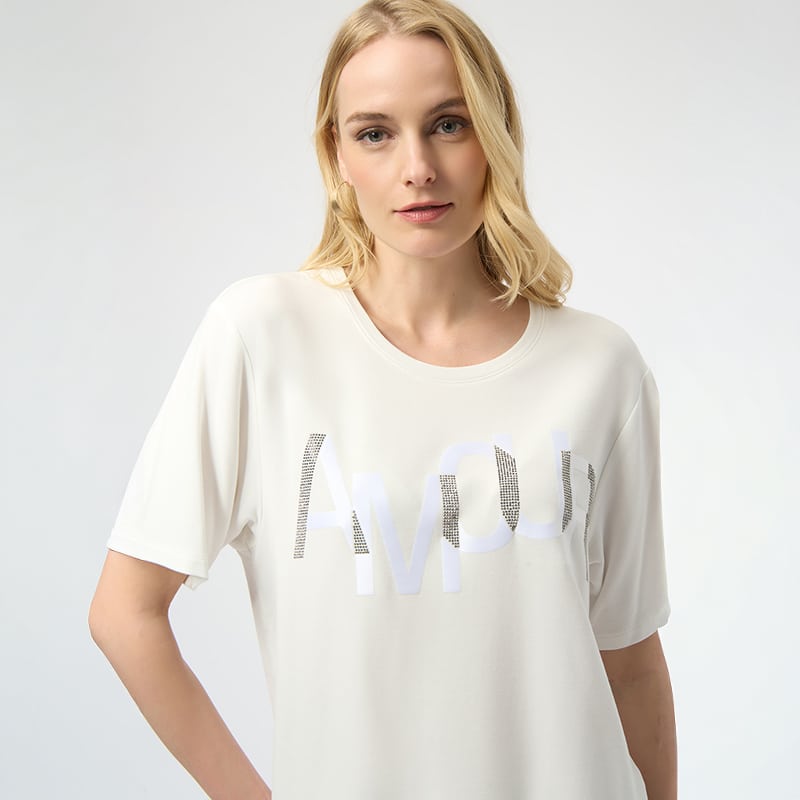 Modèle court et droit, signé « AMOUR » en pierres argentées, tissus modal très doux pour un confort exquis!