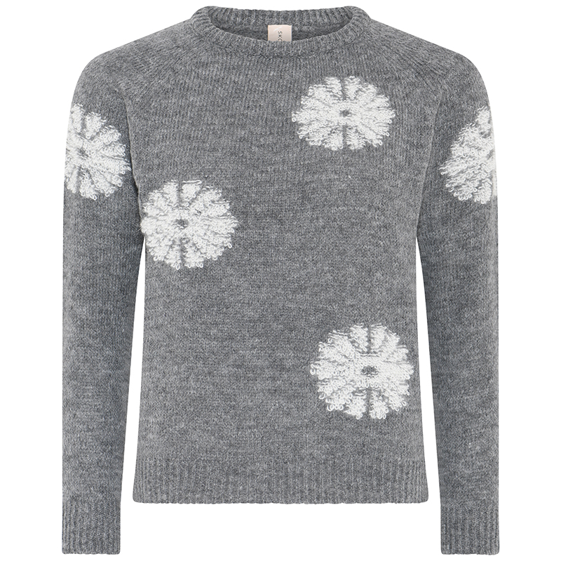 Modèle droit, disponible gris avec des motifs de fleurs blanches d’hiver.
