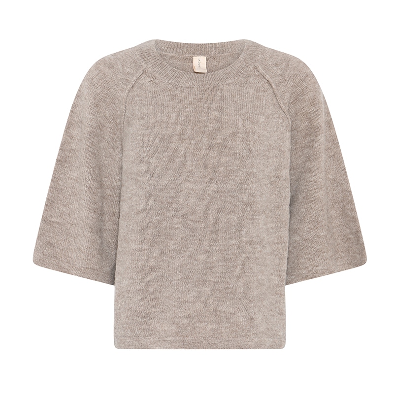 Chandail en tricot à manches 3/4 raglans avec encolure ronde près du cou.