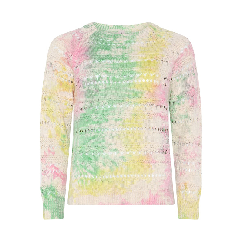Chandail en tricot de coton ajouré à manches longues raglans, encolure ronde.