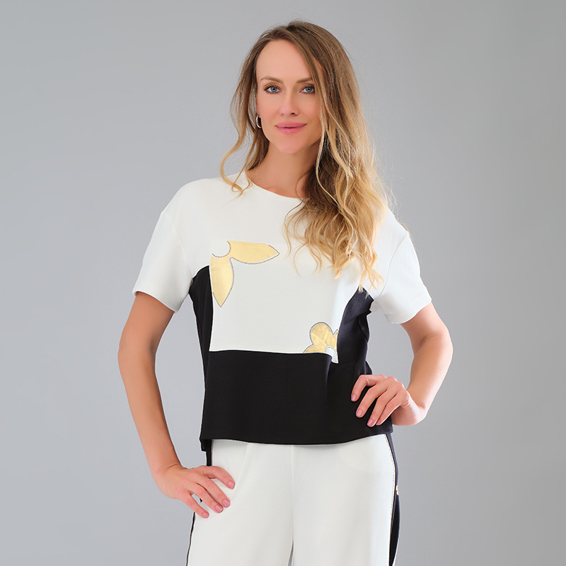 Modèle court et droit, ivoire et noir , motifs dorés.
