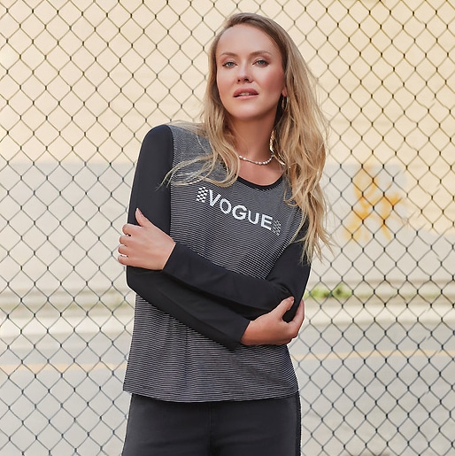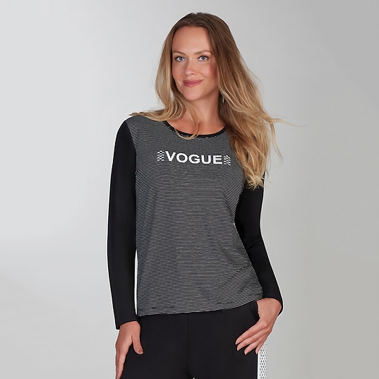Modèle droit rayé noir et blanc au corps, manches noires.