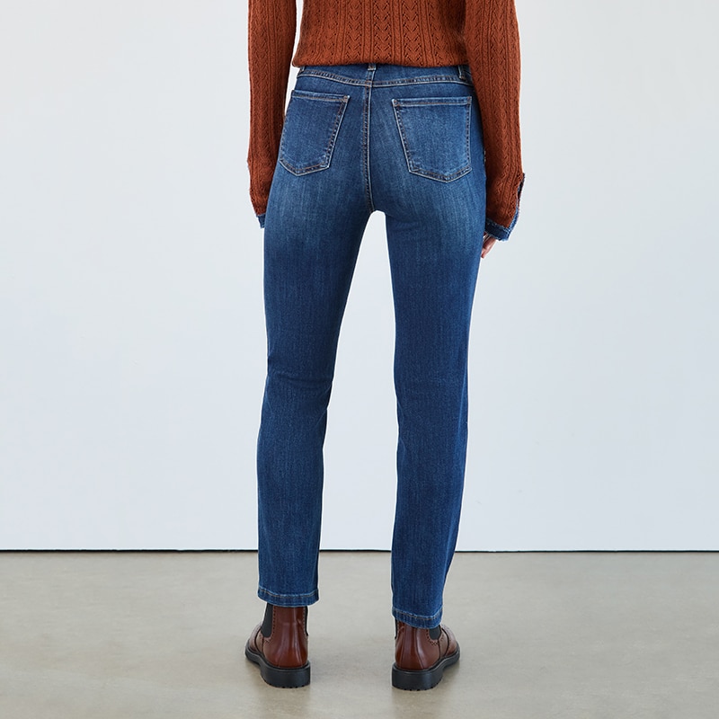 Jeans taille élastique confortable, jambes droite longueur 7/8.
