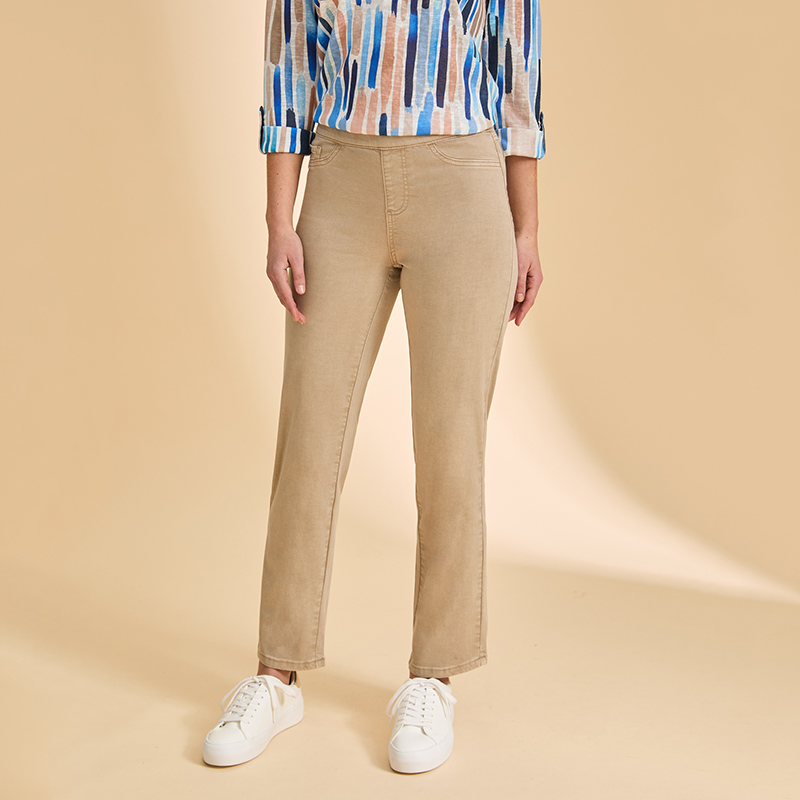 Modèle jambes droites, matière extensible.