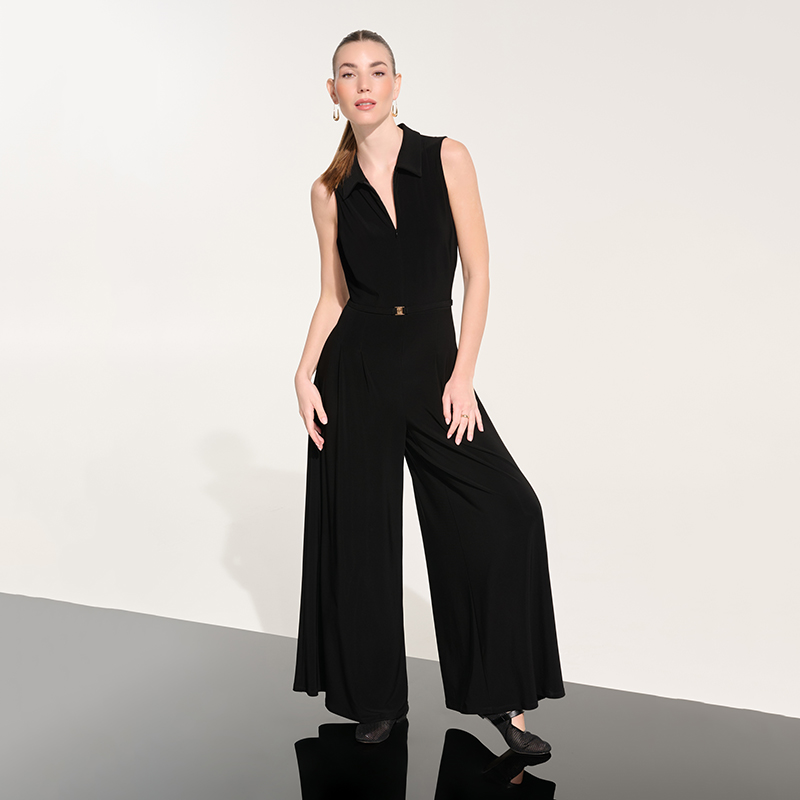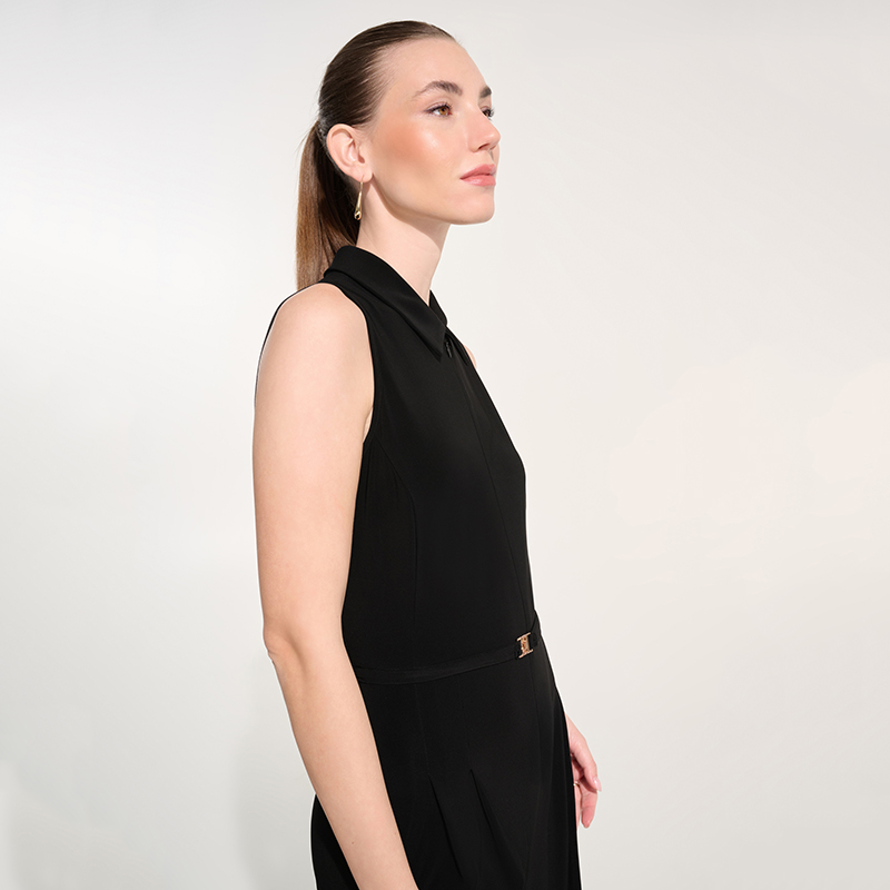 Jumpsuit en jersey léger, sans manches, col polo avec fermeture éclair.