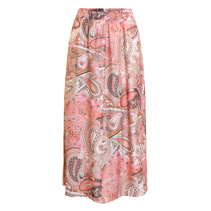 Jupe longue ouverte de chaque côté, taille élastique confortable.