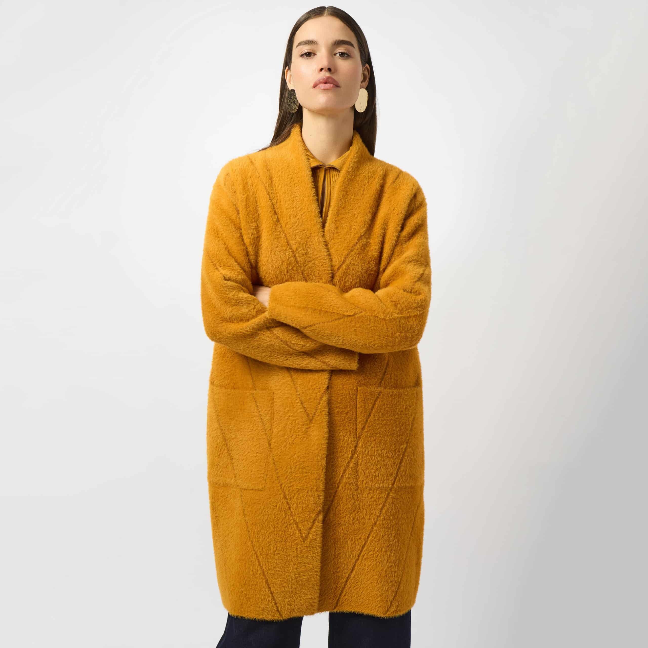 Manteau en tricot longueur 7/8, manches longues structurées, col shawl.