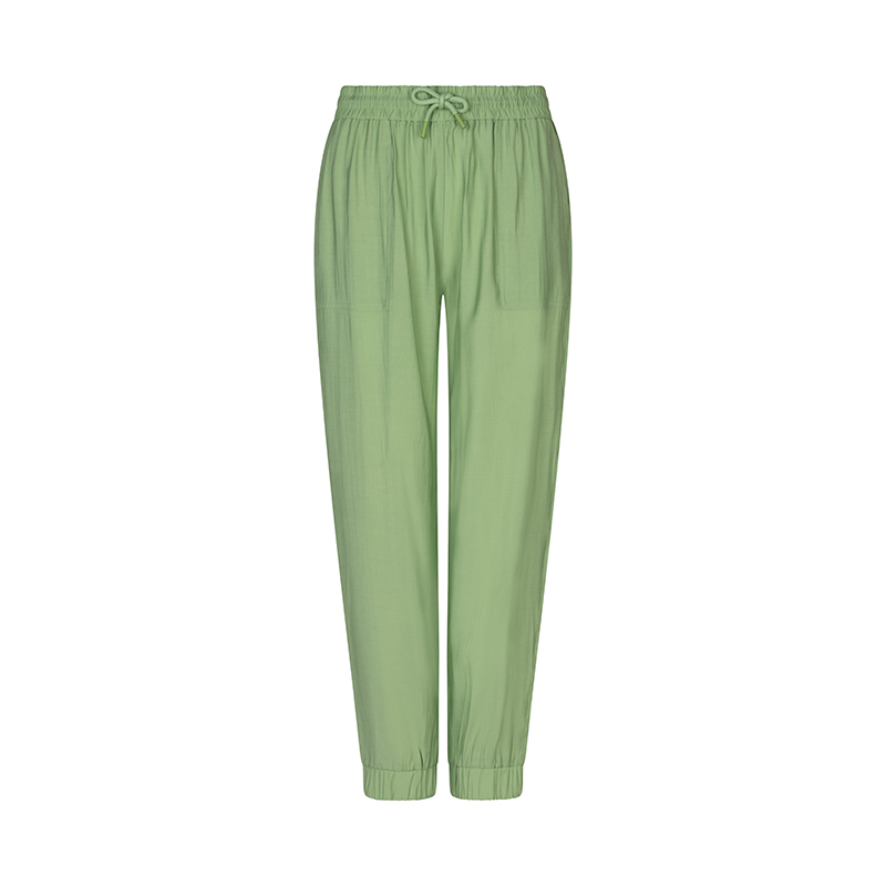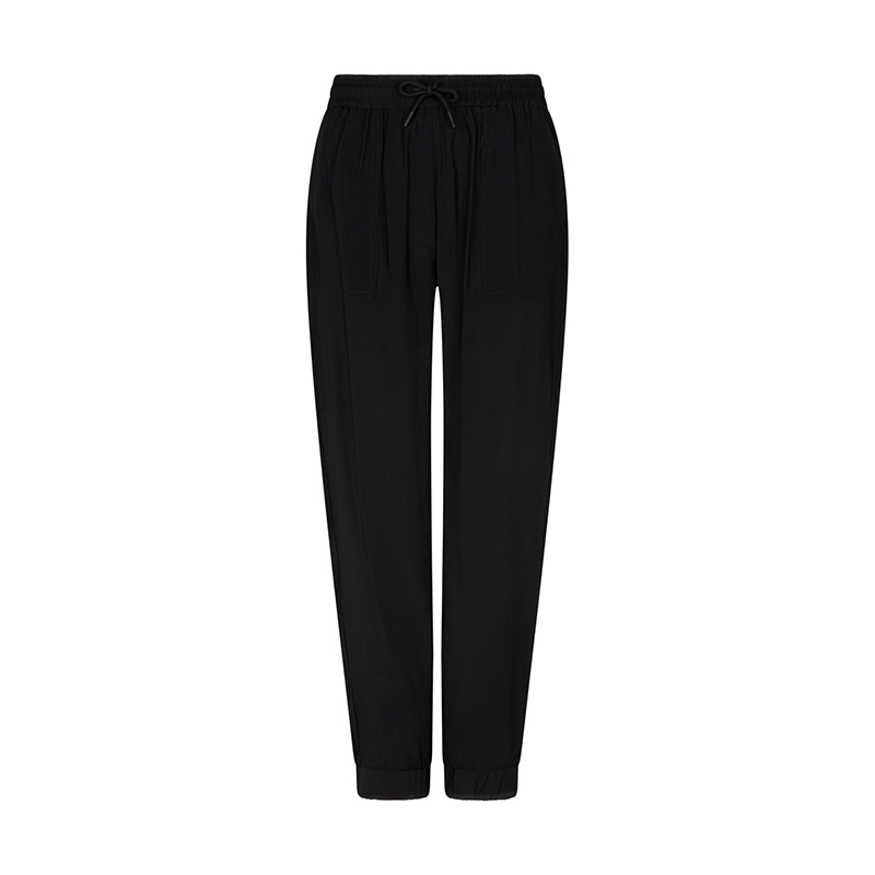 Pantalon à taille élastique avec cordon, jambes droites élastique au bas.