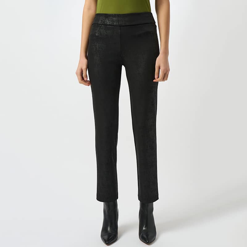 Pantalon jambes droites, bande de taille confortable, poches plaquées aux fesses.