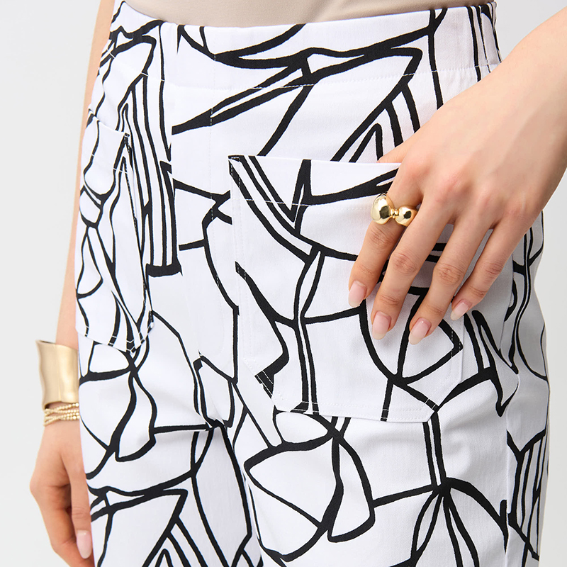 D’une audace naturelle, ce pantalon à enfiler à jambe large présente un imprimé abstrait, des poches plaquées et une ceinture élastique confortable.
