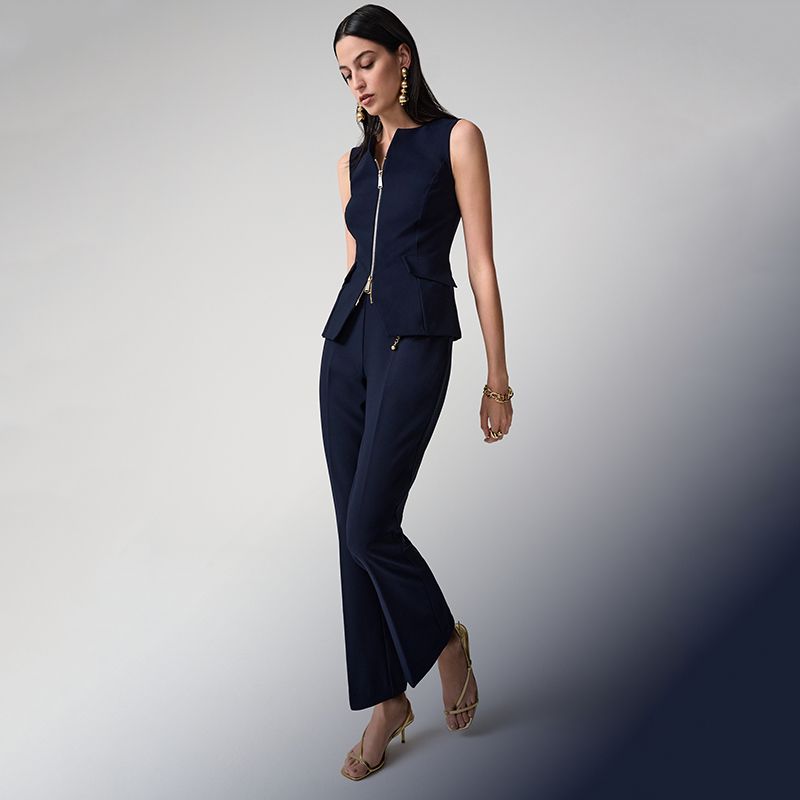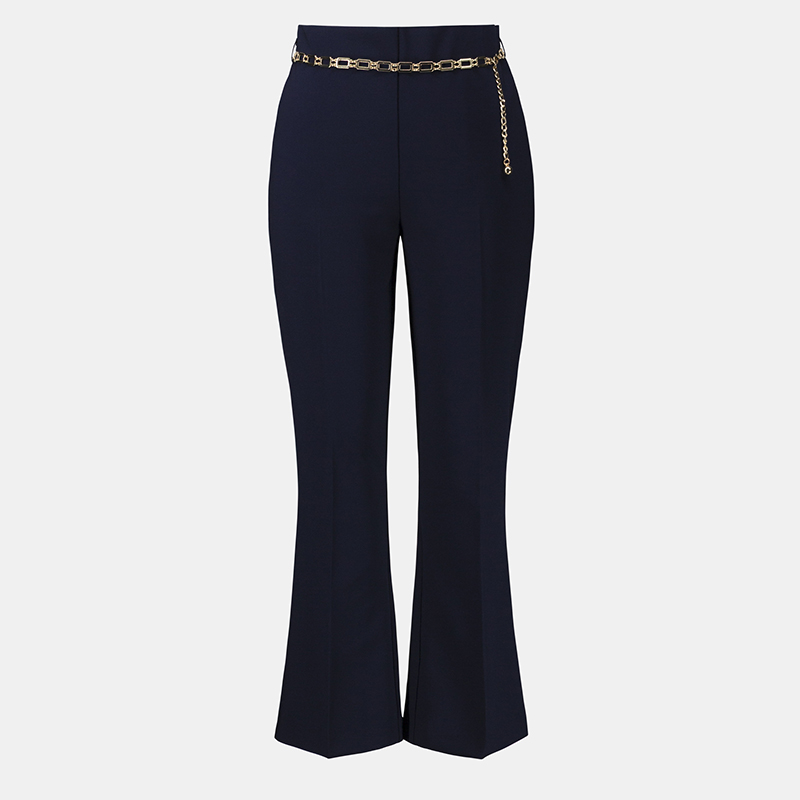 Pantalon bande de taille élastique confortable, petite ceinture en chaîne dorée incluse.