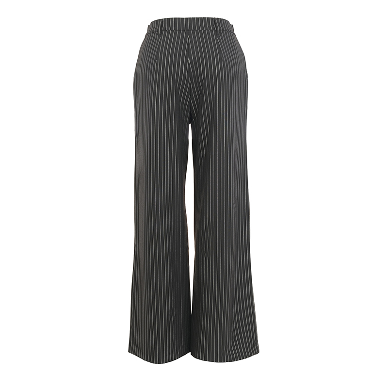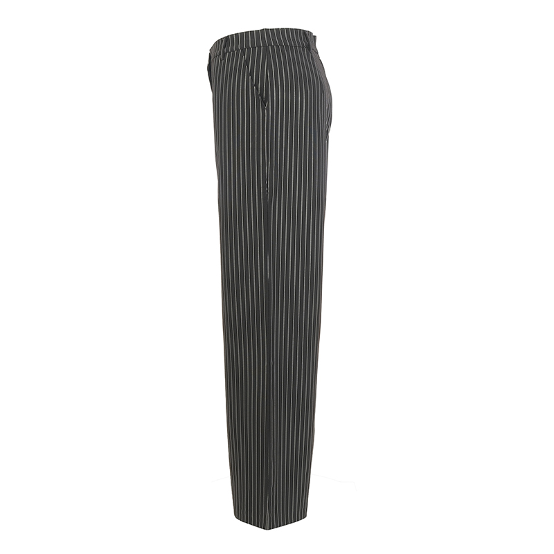 Modèle classique avec ganses et poches en biais, noir rayé argent. Veste assortie.