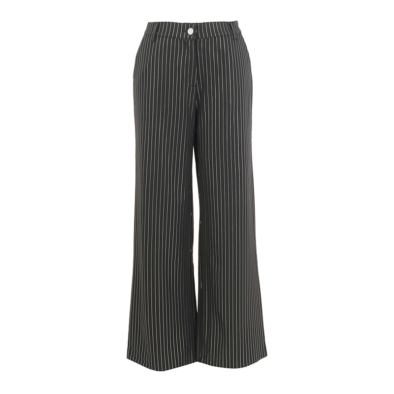 Pantalon taille régulière avec bouton et fermeture éclair, jambes larges.