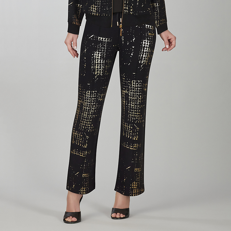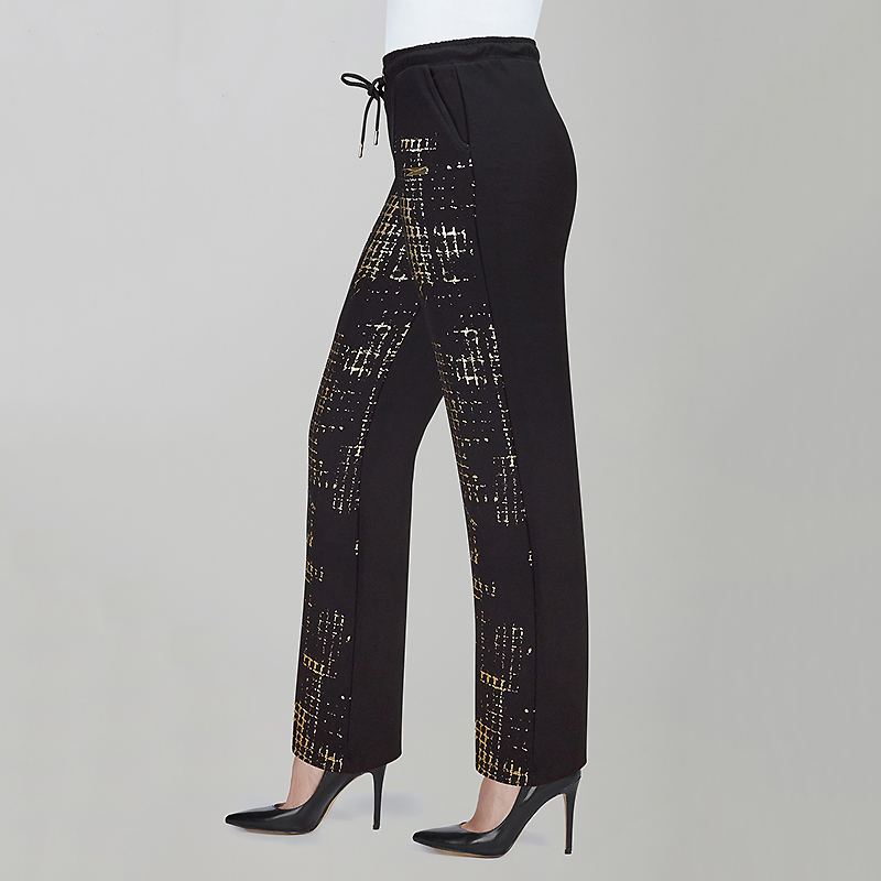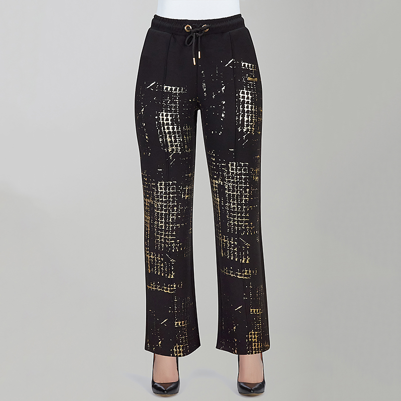 Pantalon taille élastique avec cordon, jambes droites plis cousus.