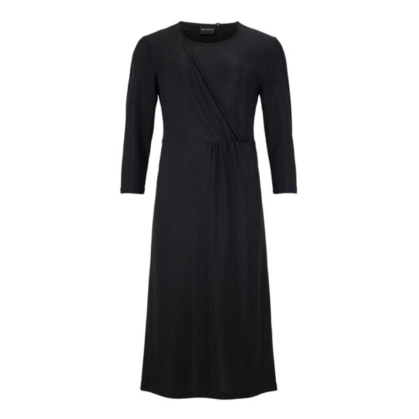 Robe demie-longueur en jersey léger à manches 3/4, encolure ronde avec un drapé effet cache cœur.