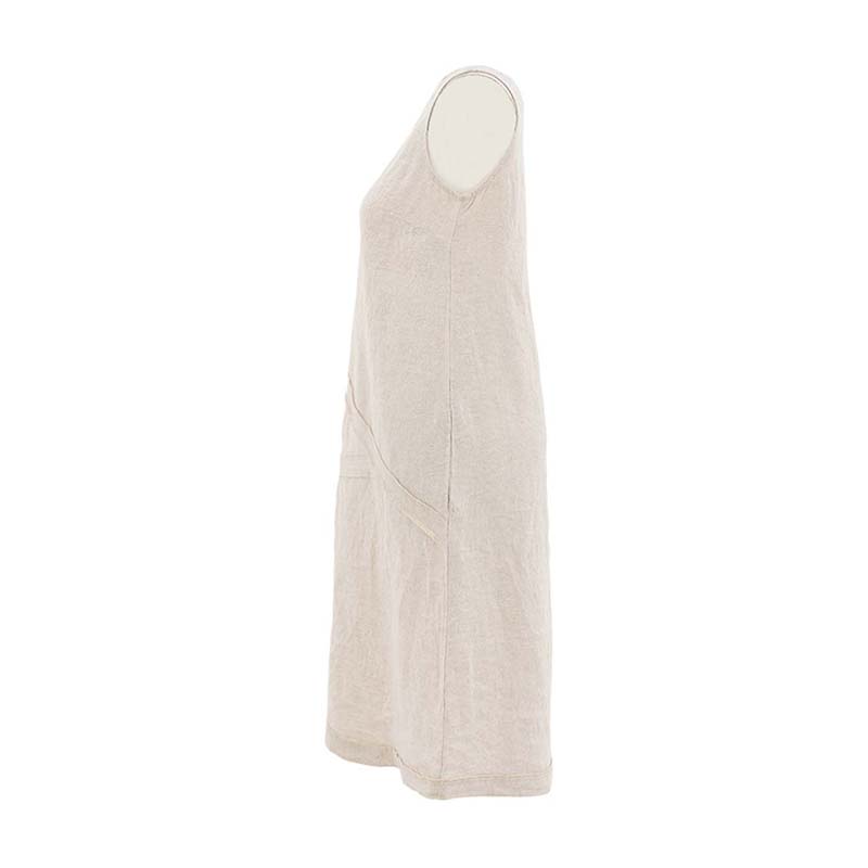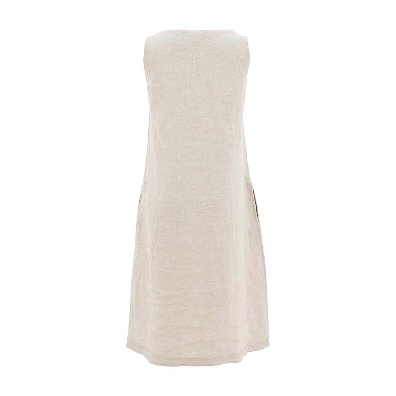 Robe longue en lin, sans manches, encolure ronde dégagée.