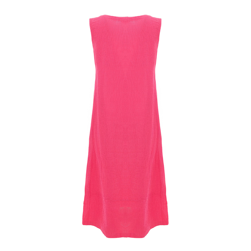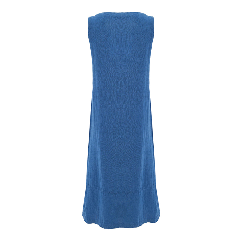 Robe longue unie, en lin, sans manches, encolure en pointe.