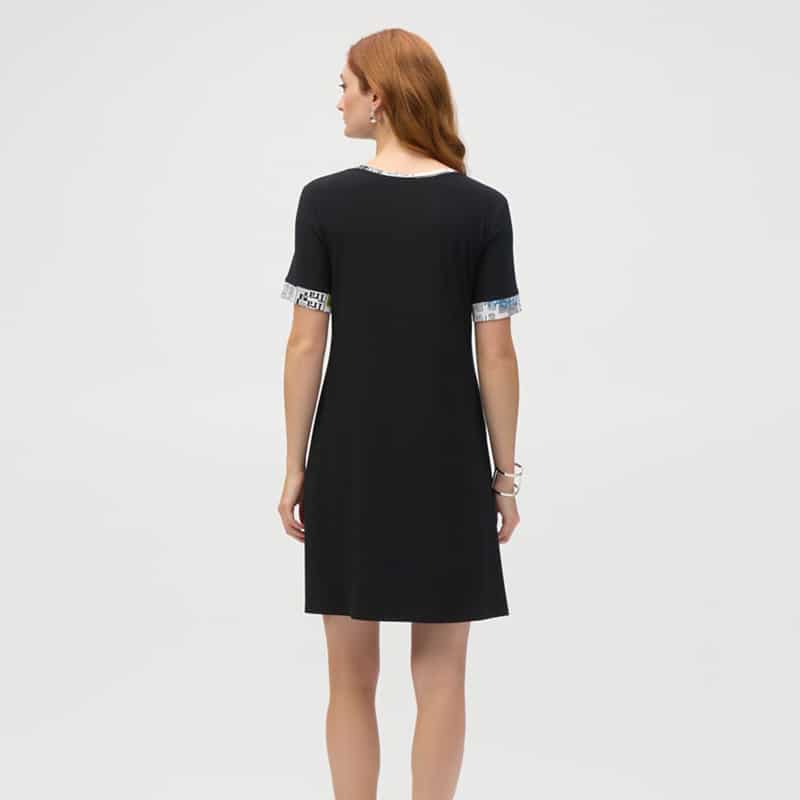 Robe courte en jersey souple, empiècement imprimé à l’encolure en V, aux manches et en pointe sur le devant.