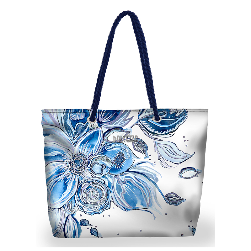 Sac fourre tout aux magnifiques imprimés de la saison, ganses en cordon et fermeture éclair.